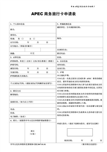 APEC商务旅行卡申请表(申办APEC商务旅行卡材料7)