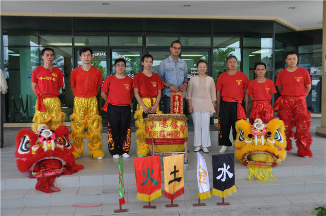 (2013年8月,金沙娱乐城舞狮队在格林纳达总理府表演,与中国驻格大使、格外长合影)