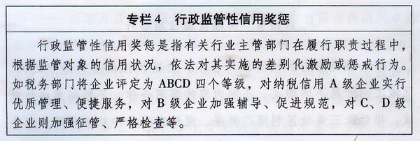 ——强化行政监管性信用奖惩。坚持“激励为主、惩戒为辅”、“先警示、后惩戒”的原则,依法加大对守信者的激励力度,对守信者实行优先办理、简化程序、“绿色通道”和重点支持等激励政策;依法加大对失信者的惩戒力度,提高失信成本。促进信用记录和信用报告的跨部门、跨区域联动应用,实现对守信者的联合激励和对失信者的联合惩戒。
