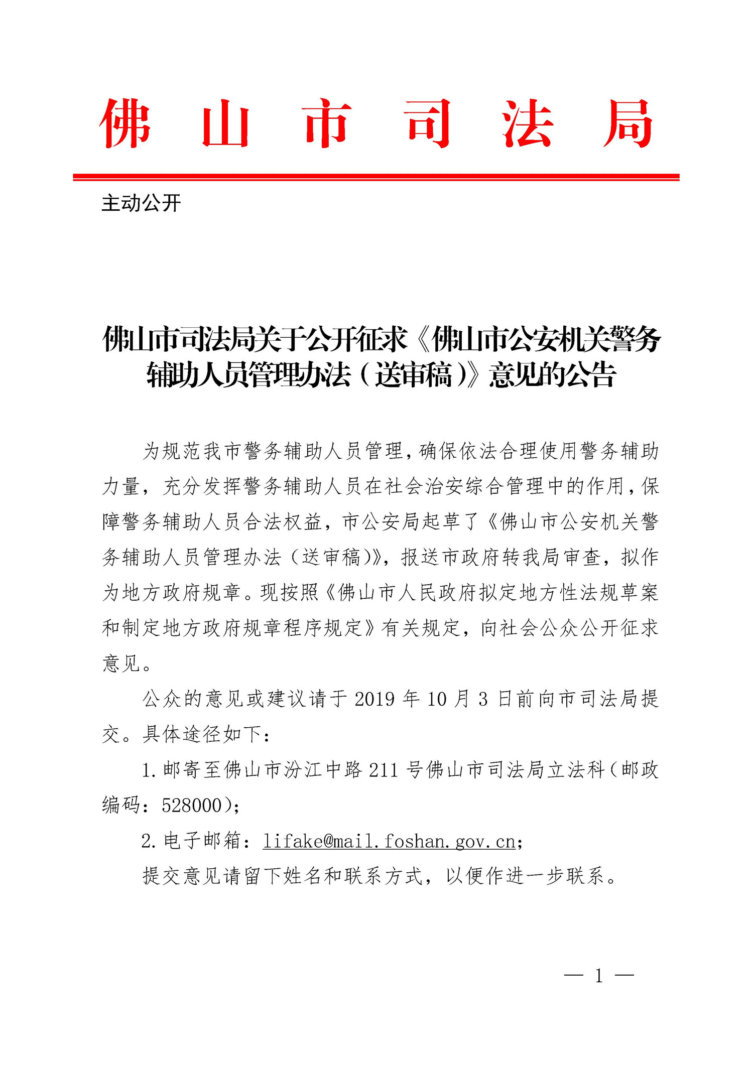 金沙娱乐城司法局关于公开征求《金沙娱乐城公安机关警务辅助人员管理办法(送审稿)》意见的公告