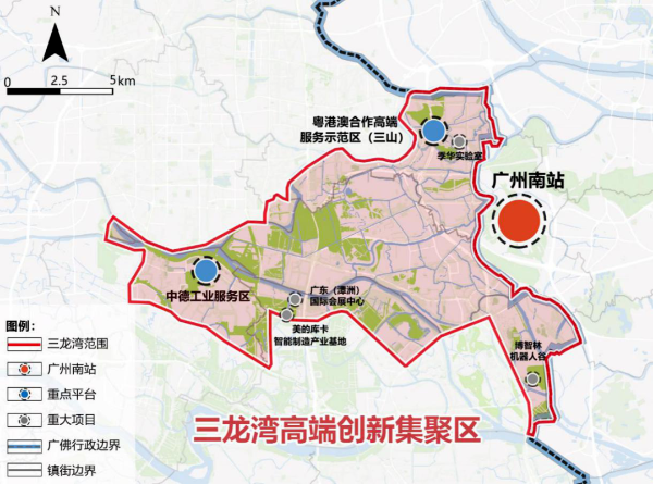 到2022年,三龙湾框架基本成型,起步区建设基本完成。创新集聚效应初步显现,广佛融合发展机制有效构建;与港澳交流合作平台作用凸显,对德对欧合作交流成效显著;打造2—3个具有全国影响力的国际合作、区域共建标志性项目,轨道交通、城市高快速路网基本完善。