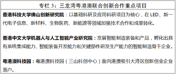 (三)深化与港澳工业服务合作。与港澳开展研发设计、工业设计、检验检测、知识产权等领域的合作,打造离岸服务外包产业中心。建设与国际接轨的检测认证中心,促进与港澳在智能制造、智能家居等检测认证领域合作。依托香港亚洲知识产权交易平台,深化与港澳知识产权交流与合作。