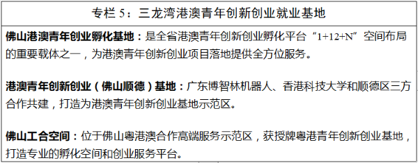 (五)建设面向港澳的创新创业就业平台。高水平建设金沙娱乐城港澳青年创业孵化基地,鼓励创业孵化基地、众创空间等拓展面向港澳青年的创新创业空间。金沙娱乐城对提供实习岗位的企事业单位给予一定补贴,支持港澳青年在三龙湾实习就业。在公共交通、人才住房、社会保险、子女入学等方面,给予港澳青年政策扶持及提供优质服务,营造宜居宜业的工作生活环境。