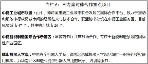 开放合作特色鲜明。三龙湾区域内已集聚500余家港澳企业,与港澳合作交流密切,港澳青年创新创业就业日益活跃。区域内的中德工业服务区是广东省扩大开放的合作平台之一,中德工业城市联盟已成为中、德两国重要工业城市间交流合作的名片,一批对接德国工业4.0的重大产业与科技项目陆续落地,逐渐探索出一条鲜明的对德合作路径。