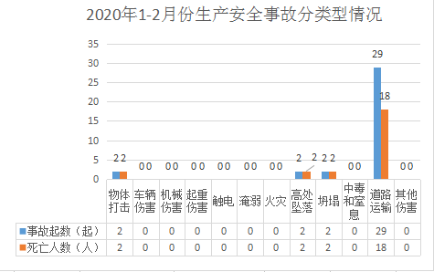 2020年1-2月份金沙娱乐城生产安全事故形势
