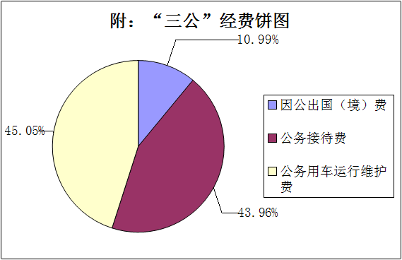 “三公”经费:财政拨款安排的因公出国(境)费、公务用车购置及运行费和公务接待费。其中,因公出国(境)费反映单位公务出国(境)的国际旅费、国外城市间交通费、住宿费、伙食费、培训费、公杂费等支出;公务用车购置及运行费反映单位公务用车车辆购置支出(含车辆购置税)及租用费、燃料费、维修费、过路过桥费、保险费等支出;公务接待费反映单位按规定开支的各类公务接待(含外宾接待)支出。