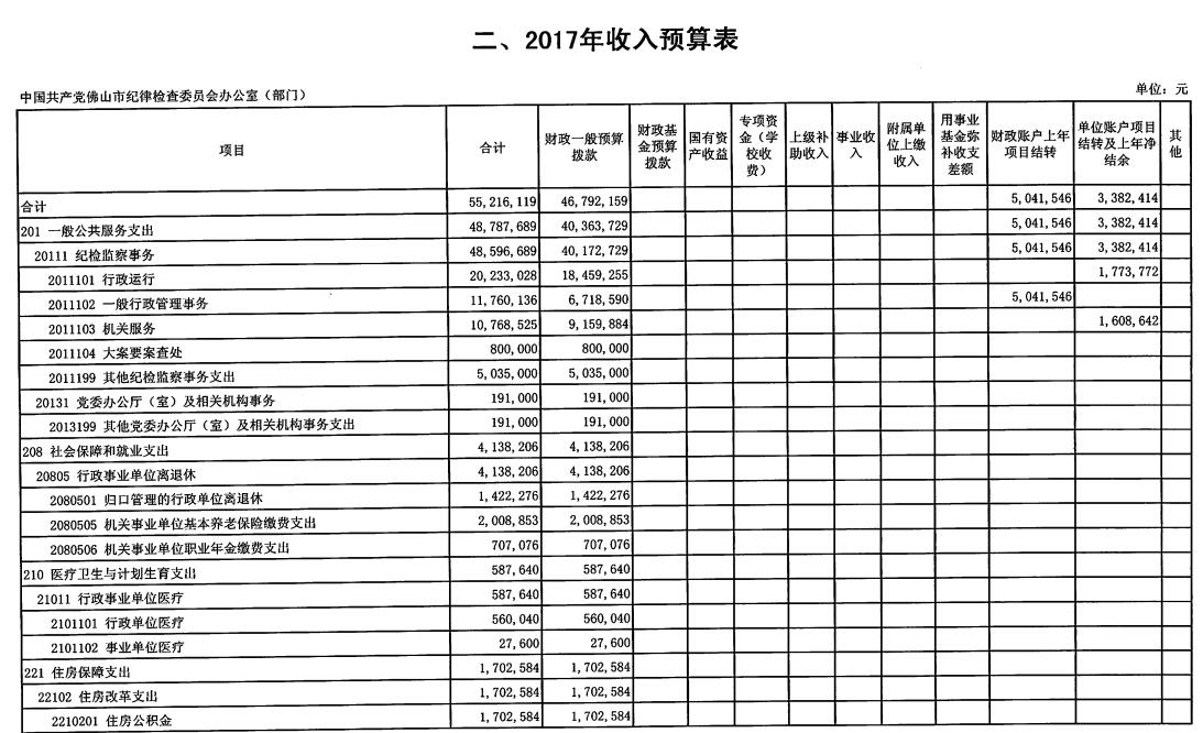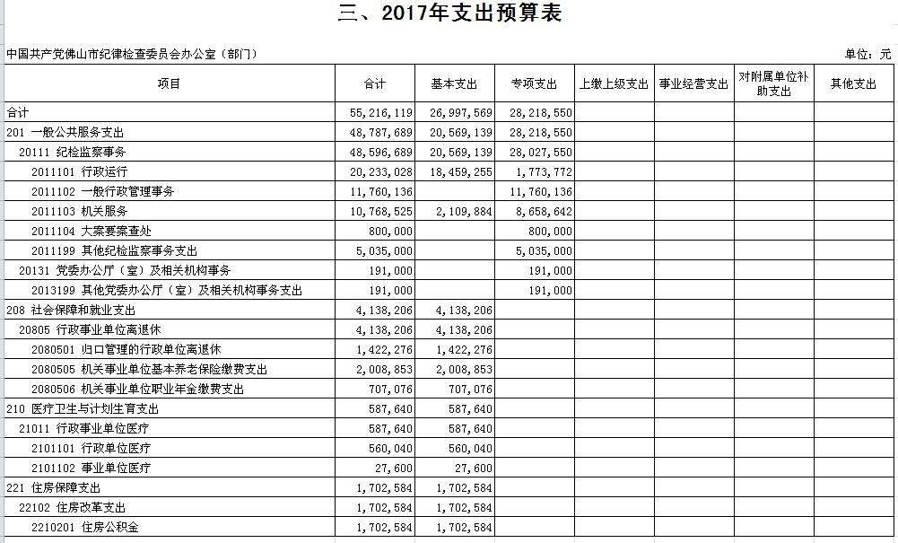 2017年度支出预算5521.61万元。按支出预算的功能分类,包括一般公共服务支出4878.77万元,占88.37%;社会保障和就业支出413.82万元,占7.49%;医疗卫生与计划生育支出58.76万元,占1.06%;住房保障支出170.26万元,占3.08%。