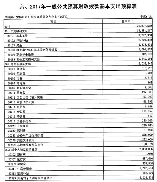 6、2017年一般公共预算财政拨款基本支出预算表;