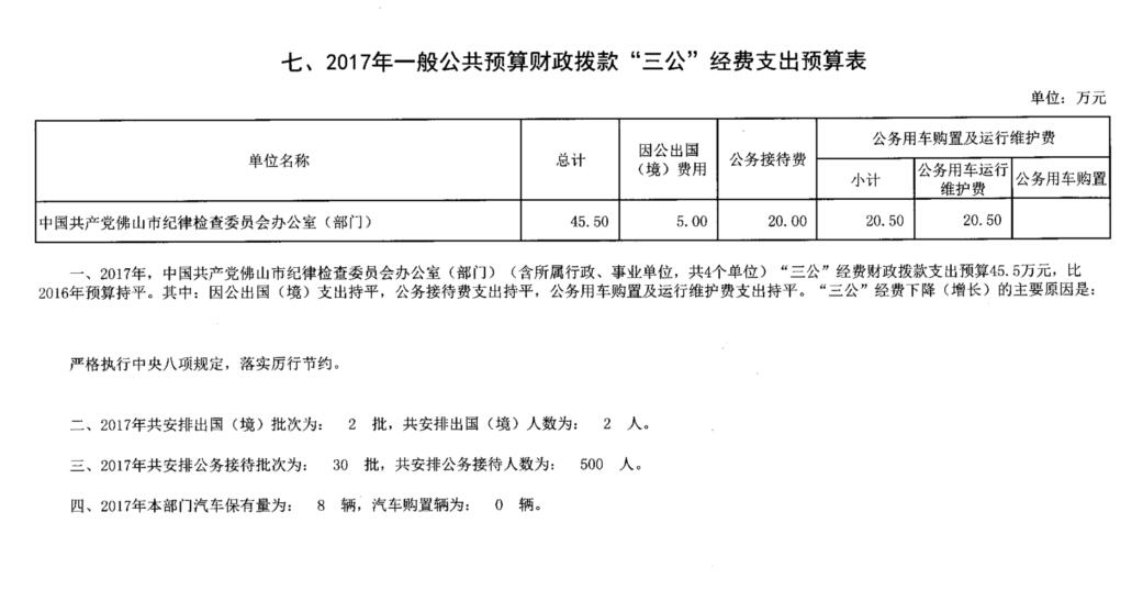 中共金沙娱乐城纪委(含:市监察局、市预防腐败局、市党风廉政教育中心)共4个单位,2017年“三公”经费财政拨款预算合计45.5万元。具体情况如下: