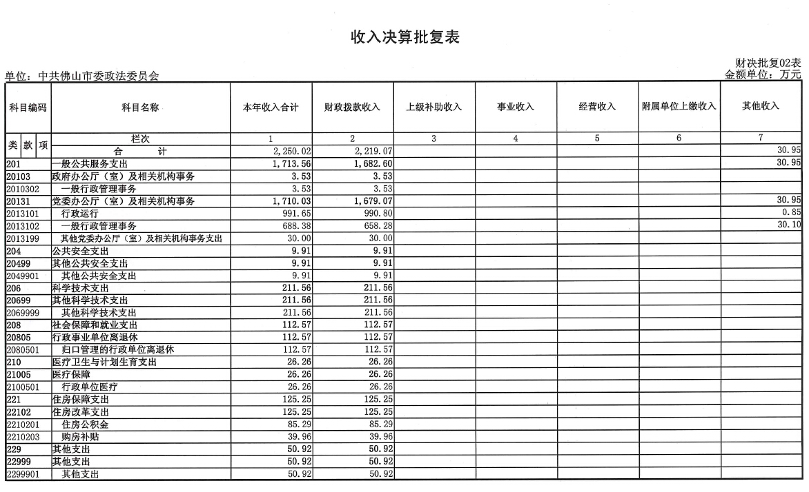 市委政法委2015年度收入决算2250.02万元,其中:财政拨款2219.07万元,占98.62%;事业收入0 万元,占0%;其他各类资金30.95万元,占1.38%。