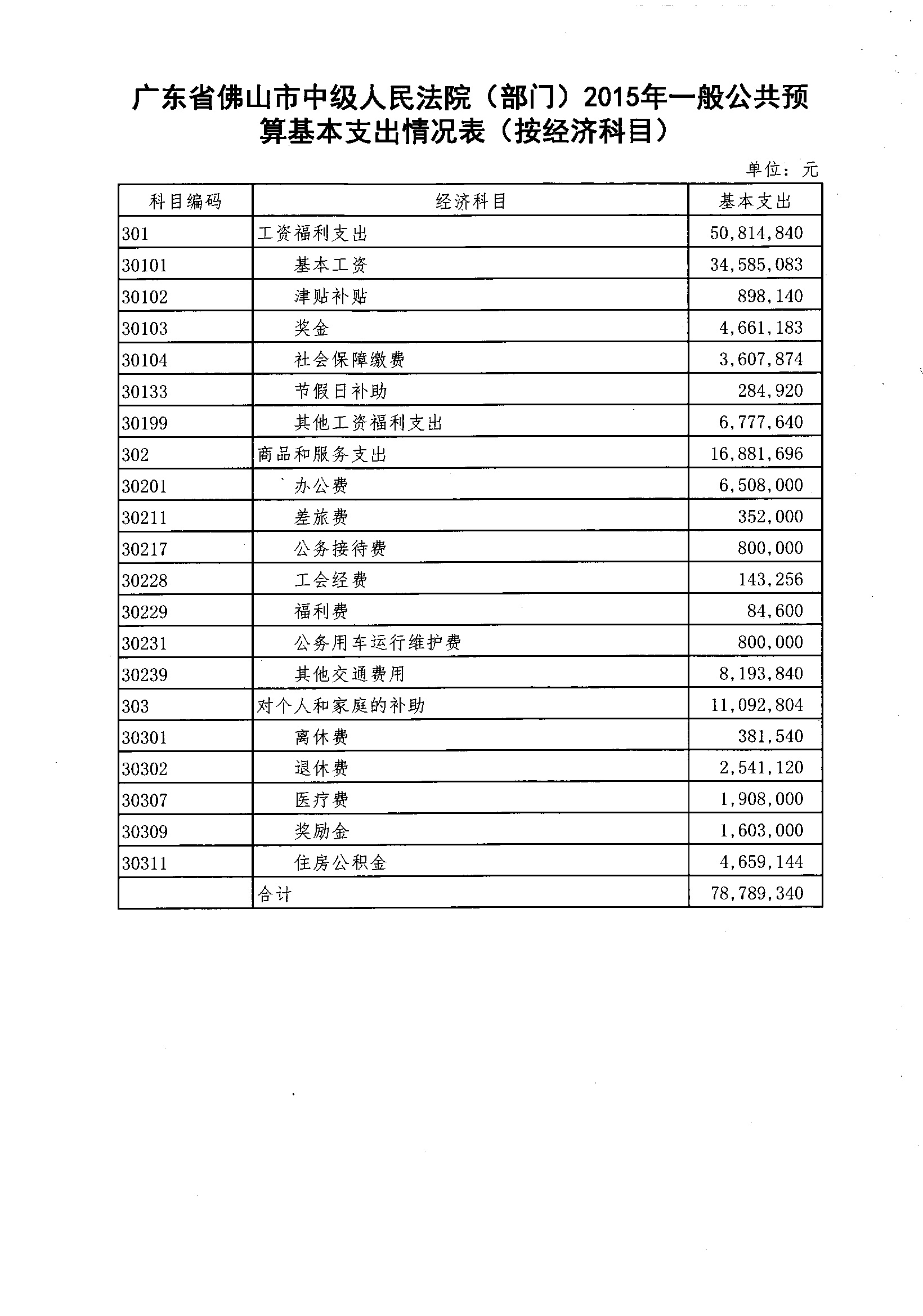 广东省金沙娱乐城中级人民法院(部门)2015年一般公共预算基本支出情况表(按经济科目)