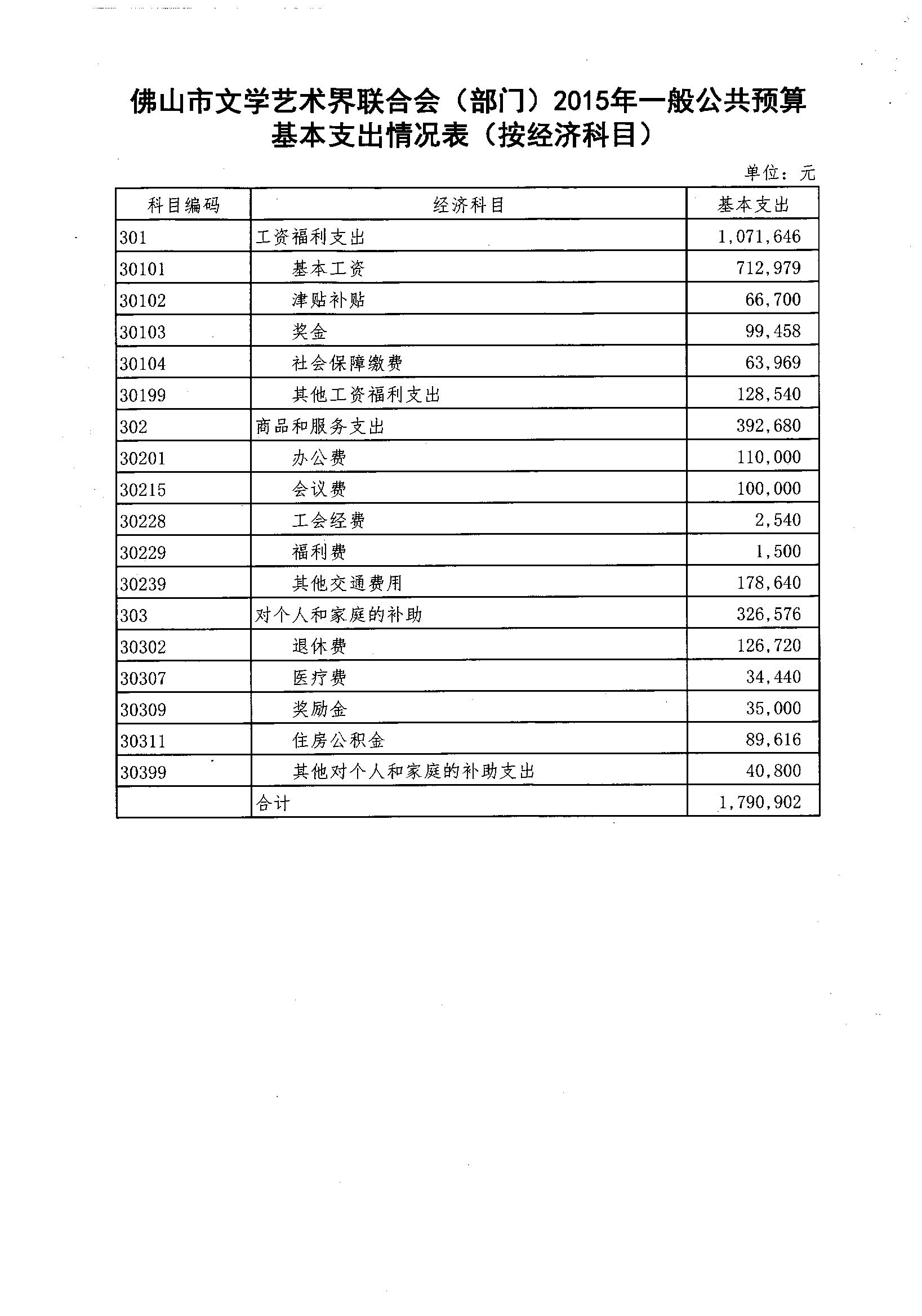 金沙娱乐城文学艺术界联合会(部门)2015年一般公共预算基本支出情况表(按经济科目)