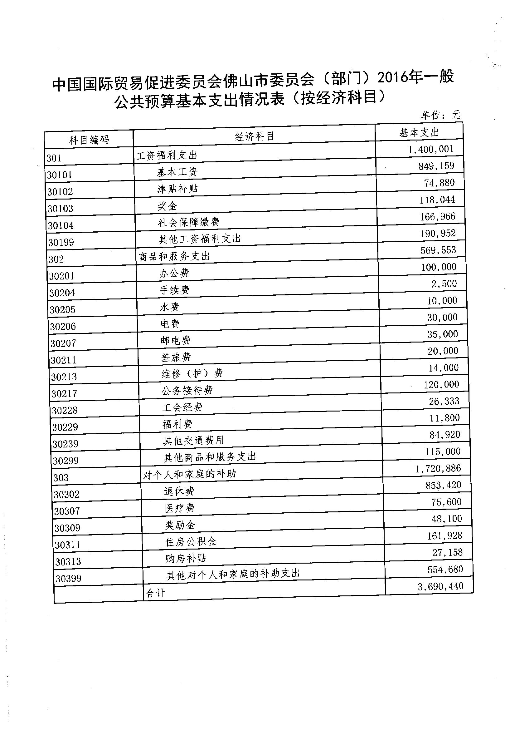 中国国际贸易促进委员会金沙娱乐城委员会(部门)2016年一般公共预算基本支出情况表(按经济科目)