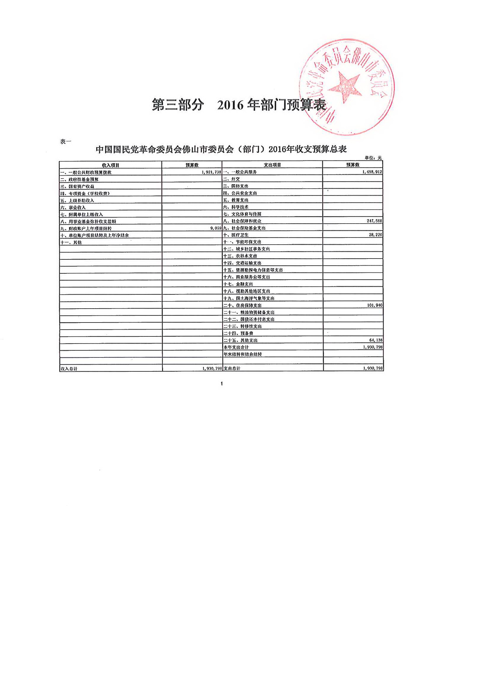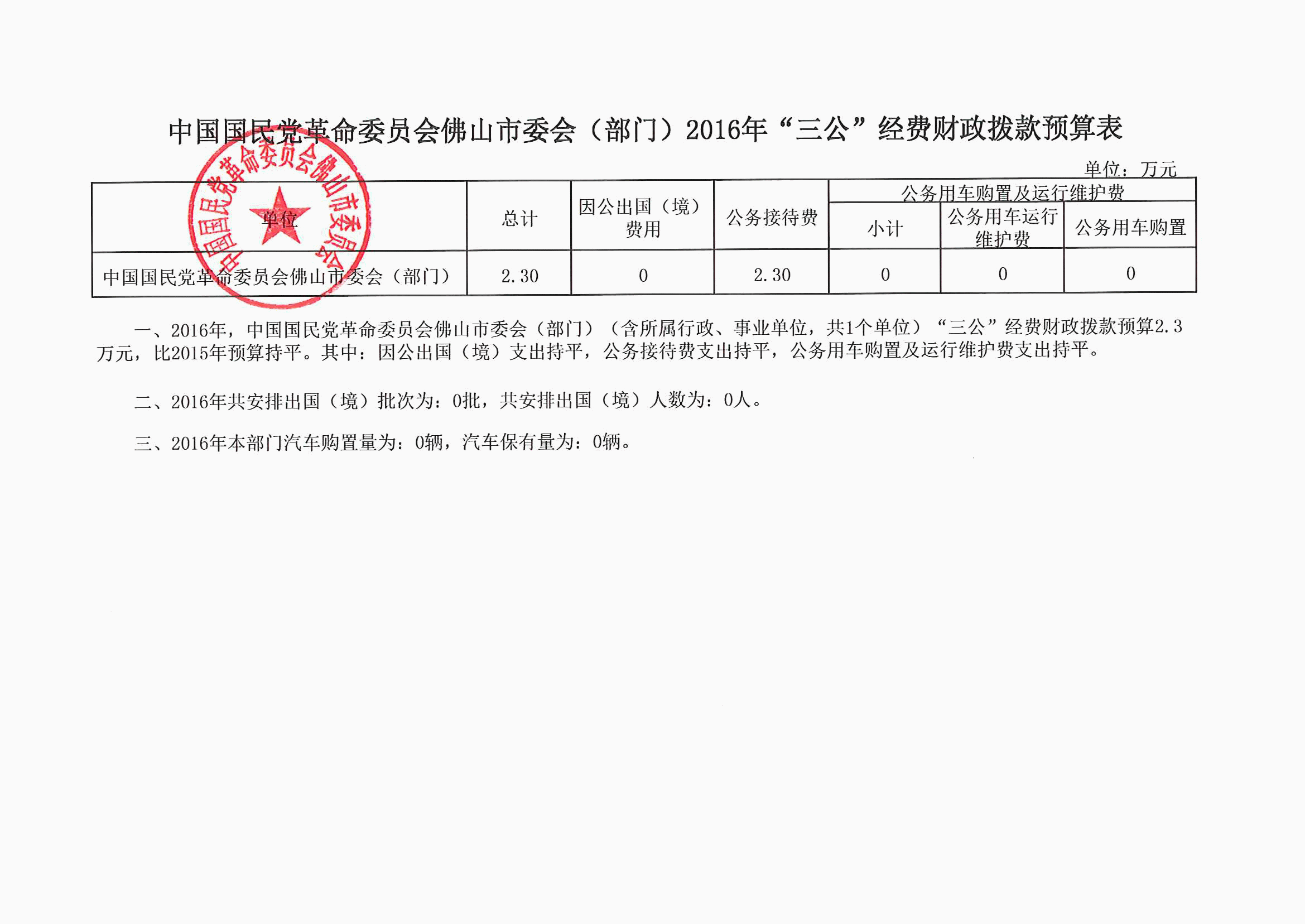 中国国民党革命委员会金沙娱乐城委员会(部门)2016年部门预算