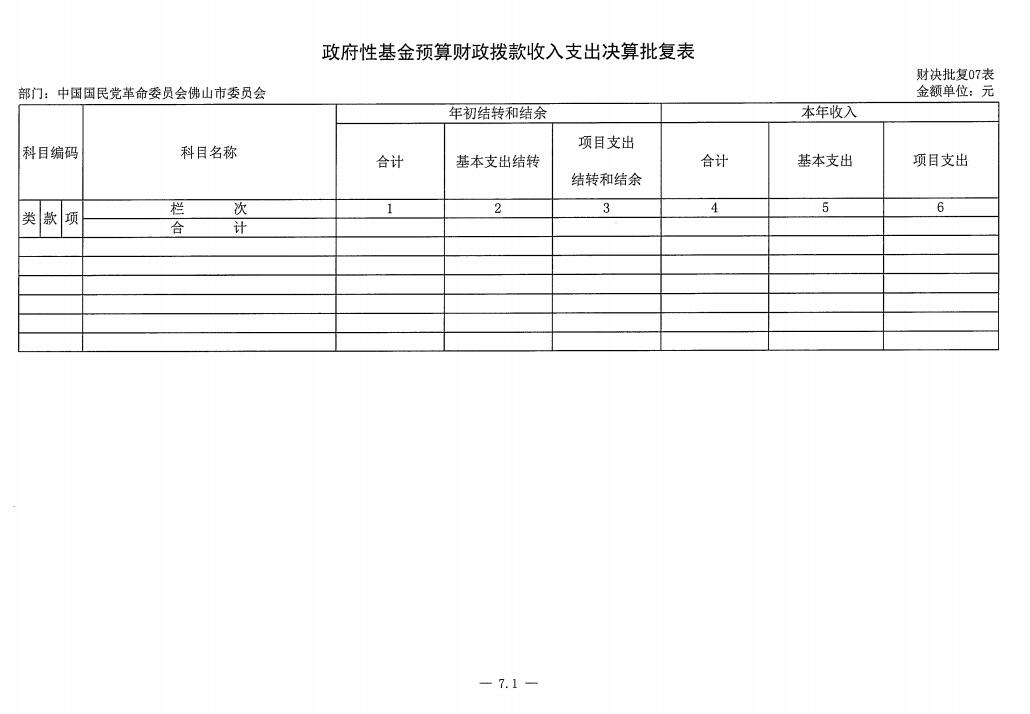 七、 政府性基金预算财政拨款收入支出预(决)算表