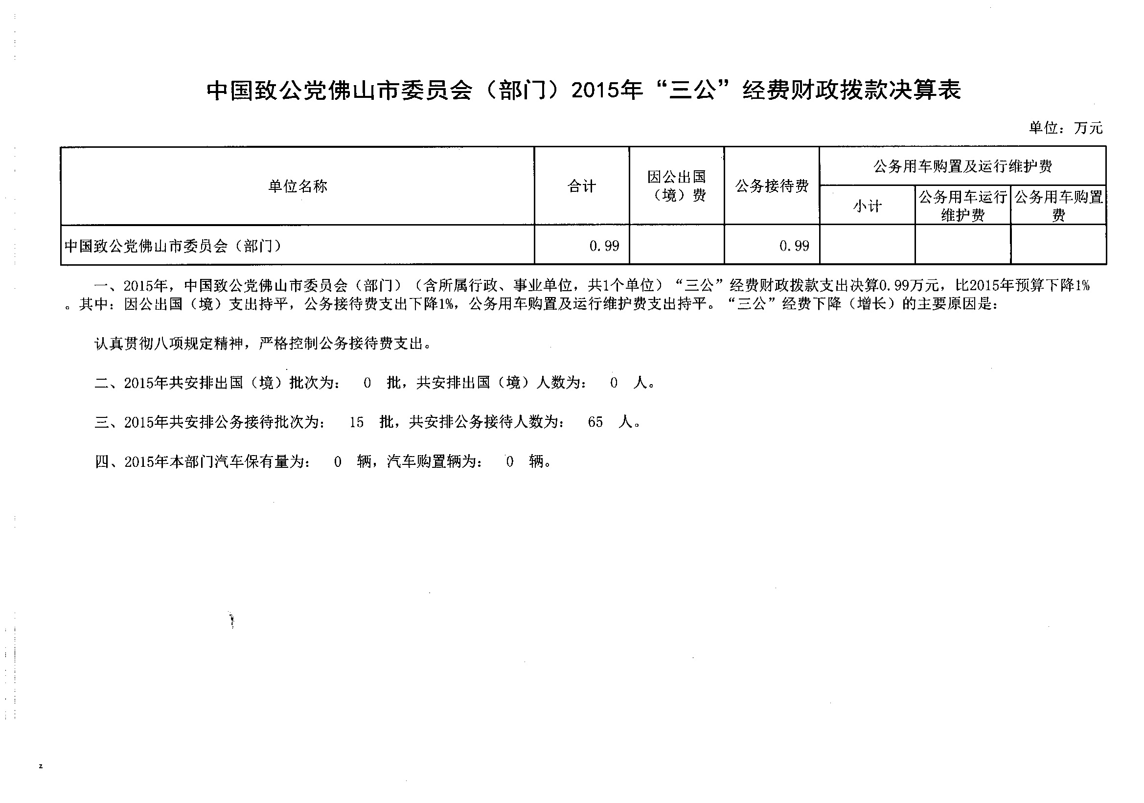 致公党金沙娱乐城委会2015年部门决算分析报告