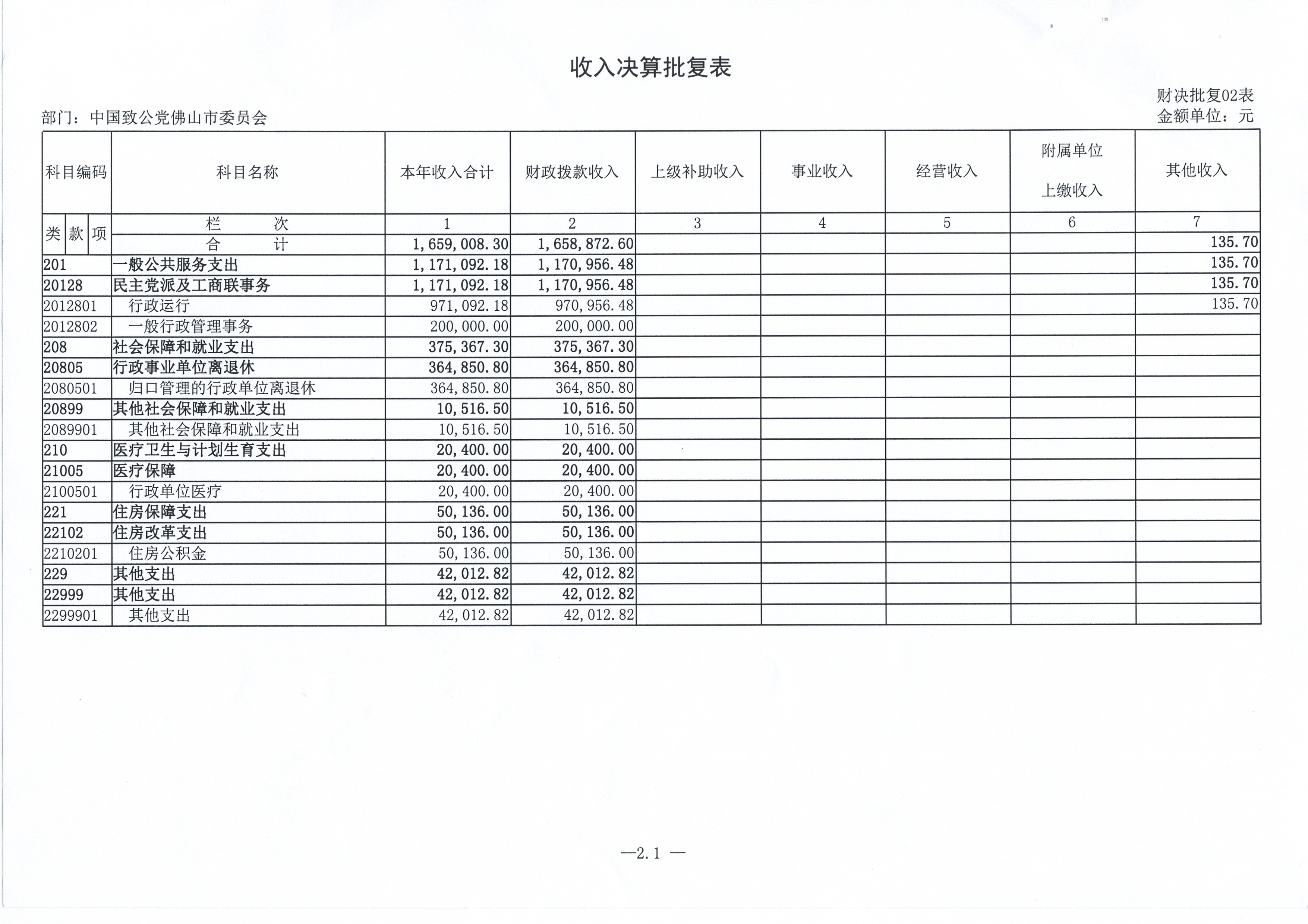 二、 收入决算表