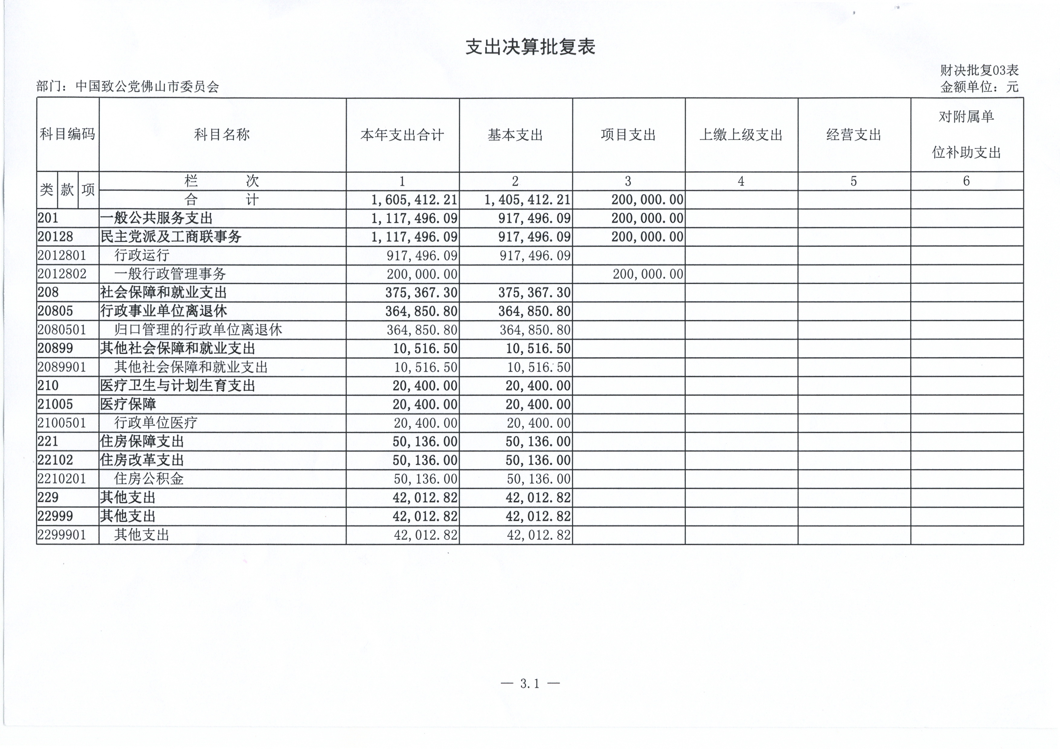 三、 支出决算表