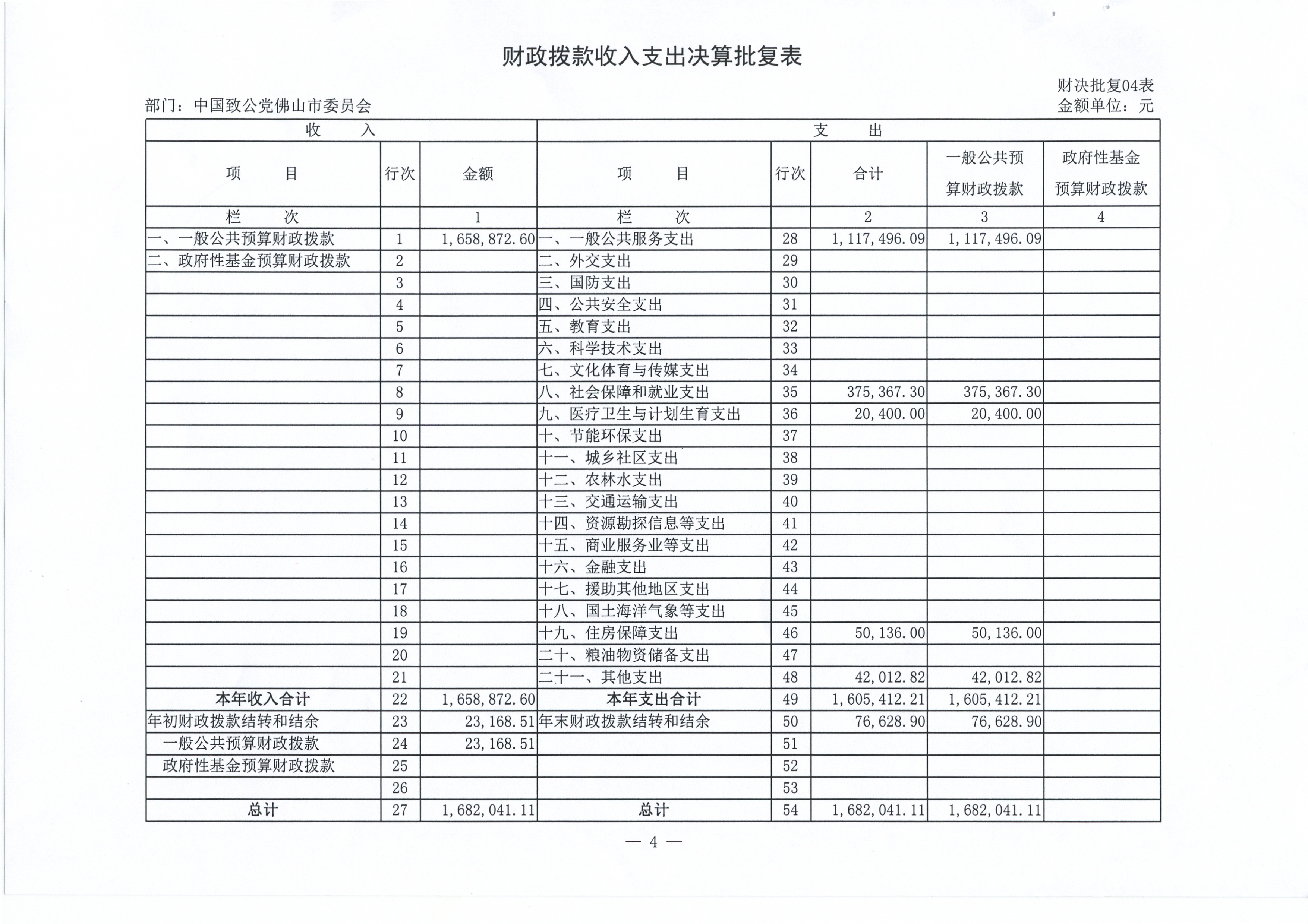 四、 财政拨款收入支出决算总表