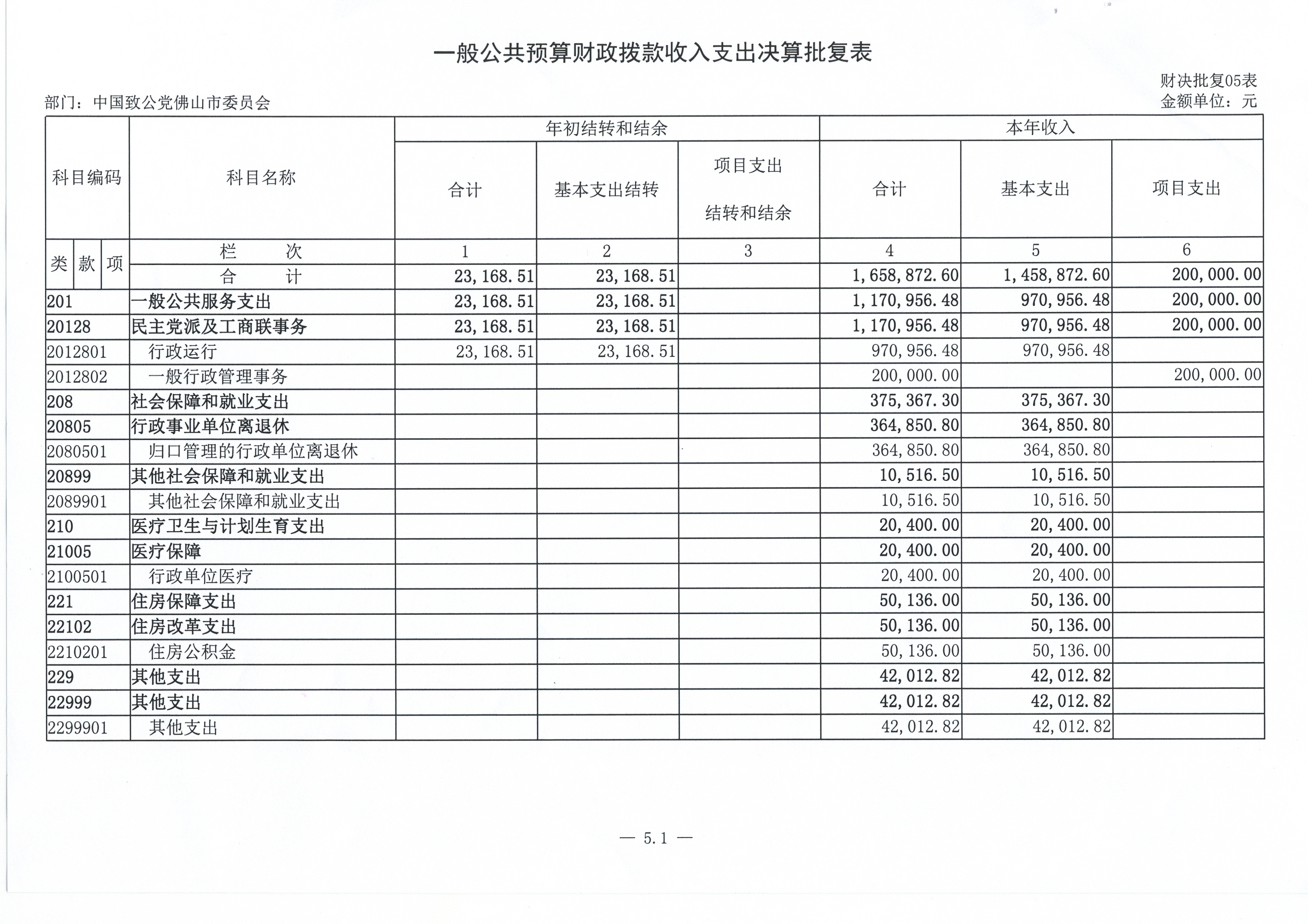 五、 一般公共预算财政拨款收入支出决算表