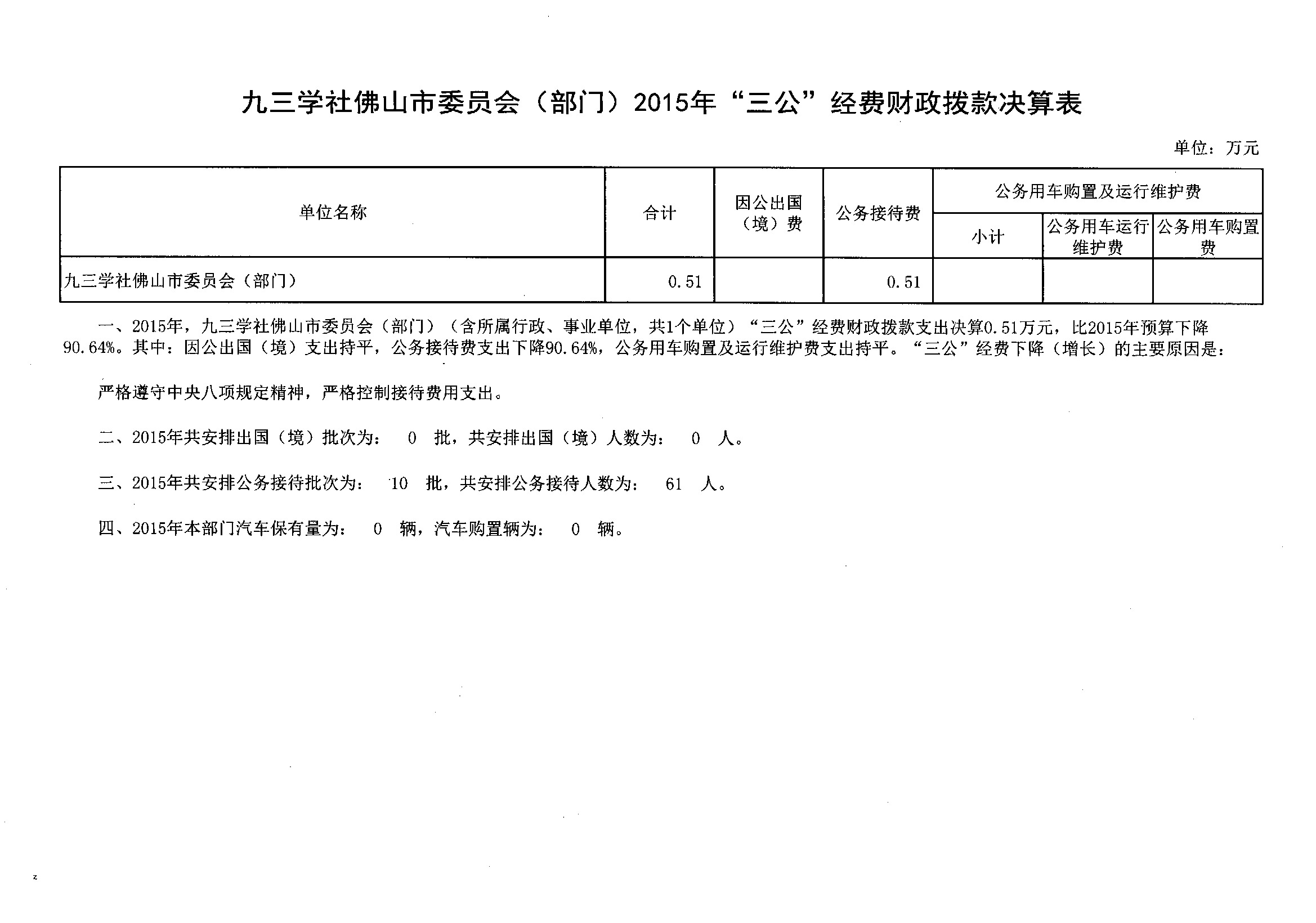 九三学社金沙娱乐城委员会2015年度部门决算分析报告