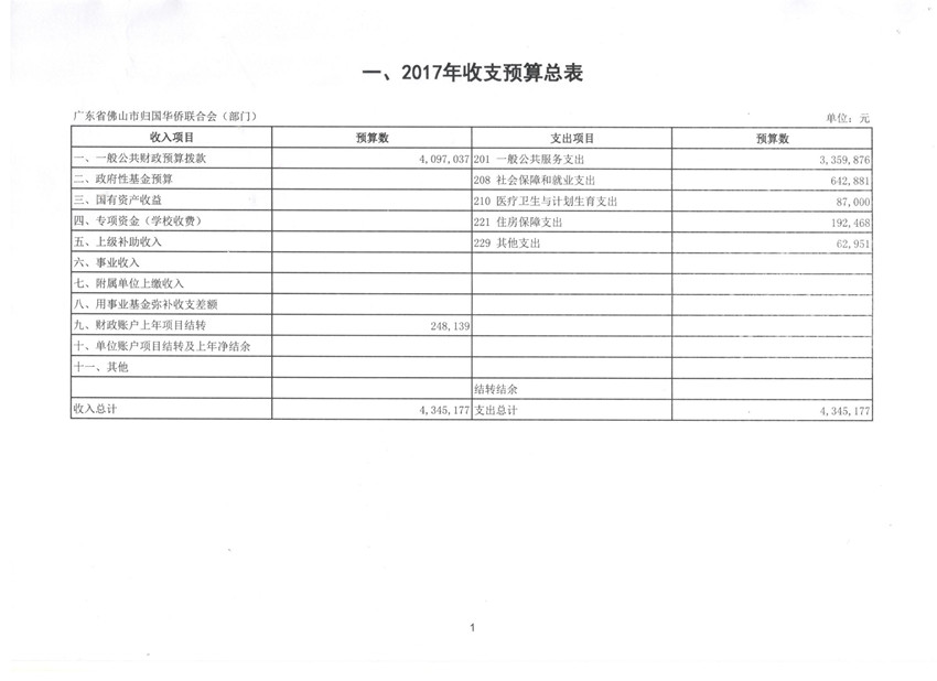 广东省金沙娱乐城归国华侨联合会(部门)2017年收支总预算434.52万元,比2016年收支总预算增加1.7%。其中:本年收入434.52万元;本年支出434.52万元。