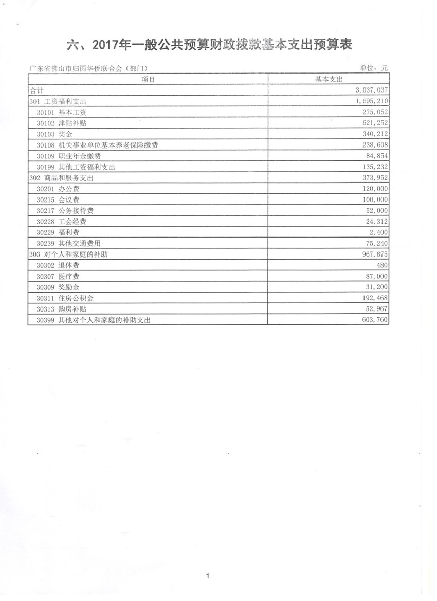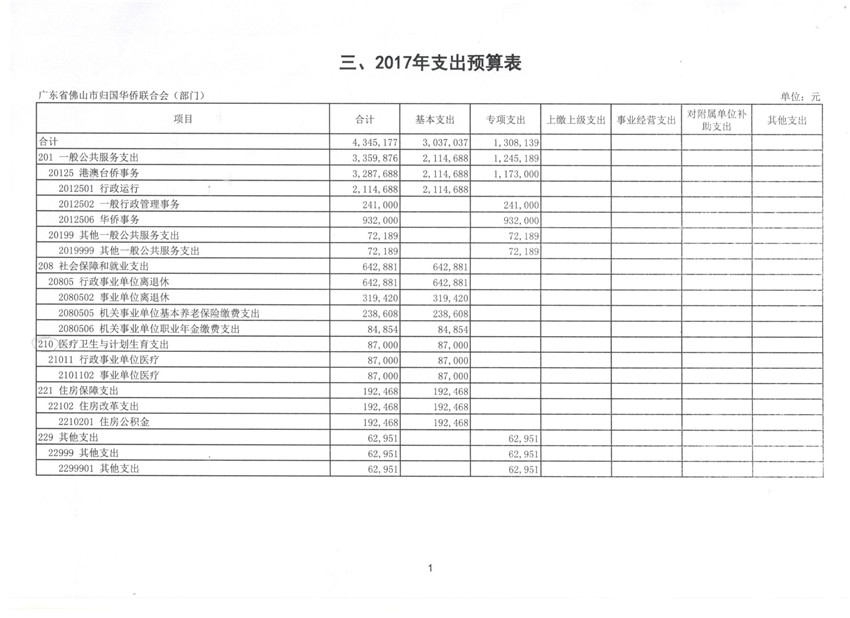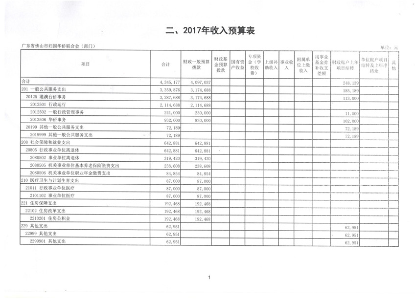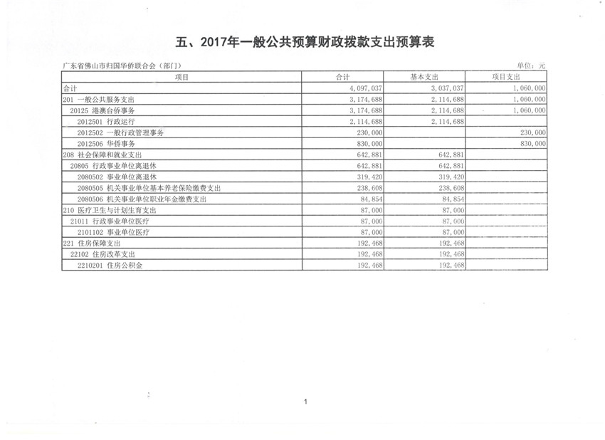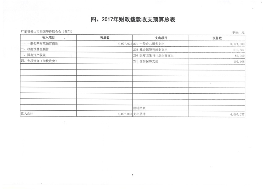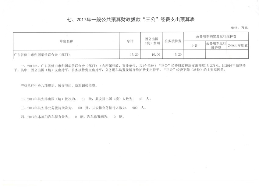 广东省金沙娱乐城归国华侨联合会2017年部门预算