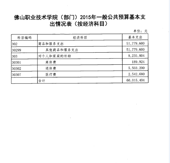 2015年一般公共预算基本支出情况表