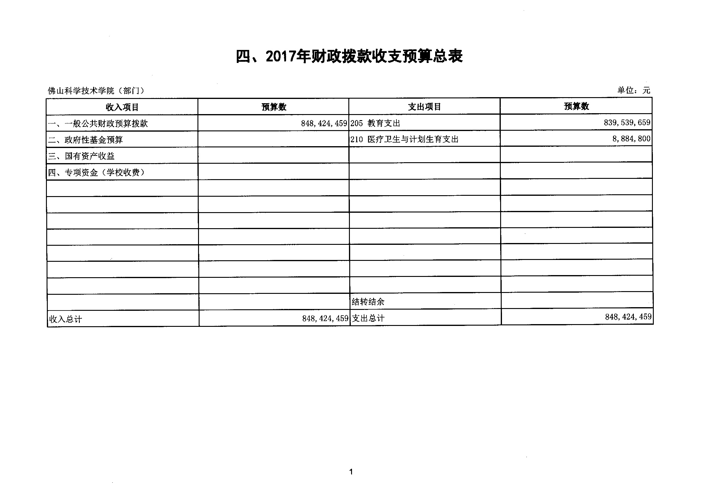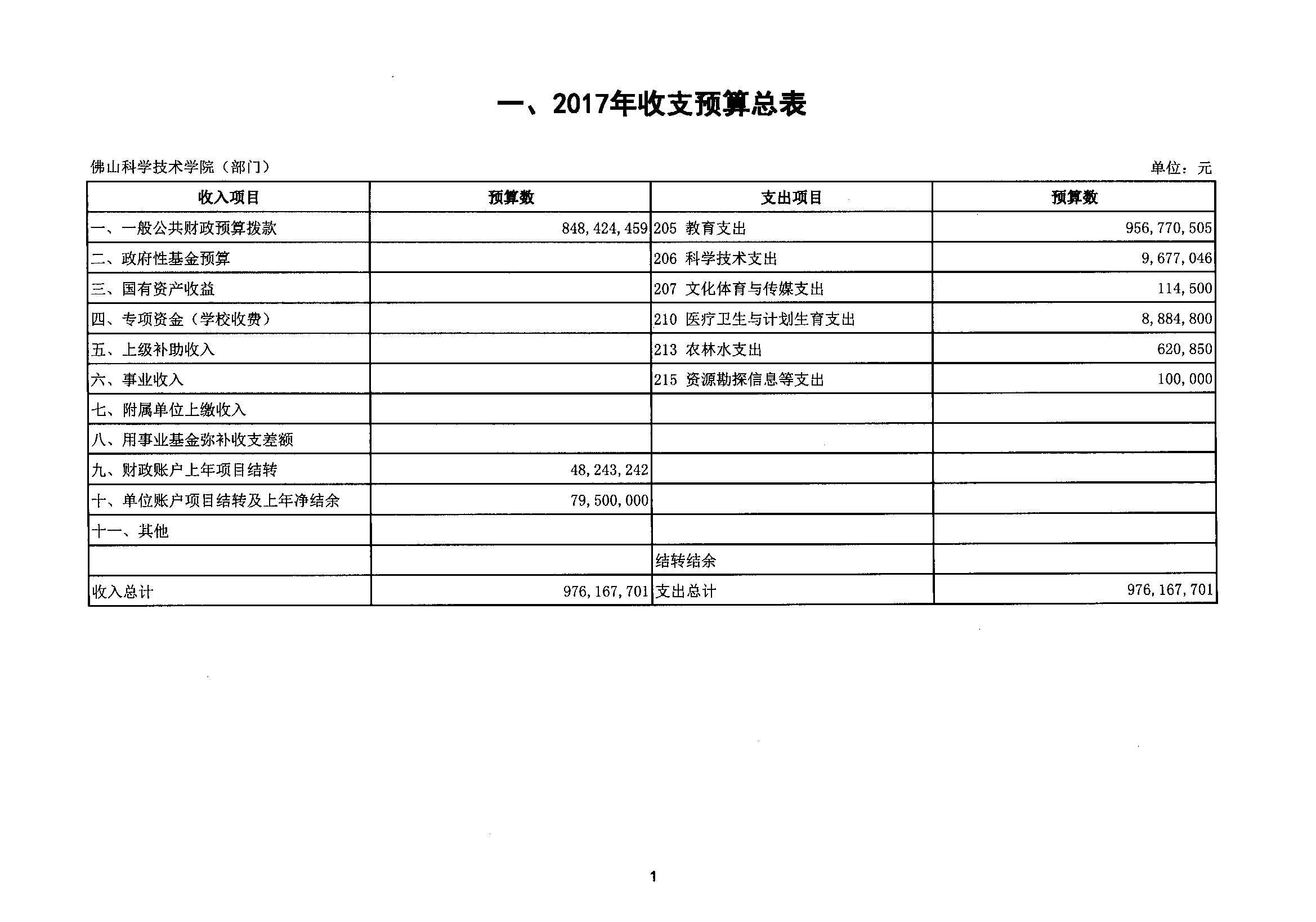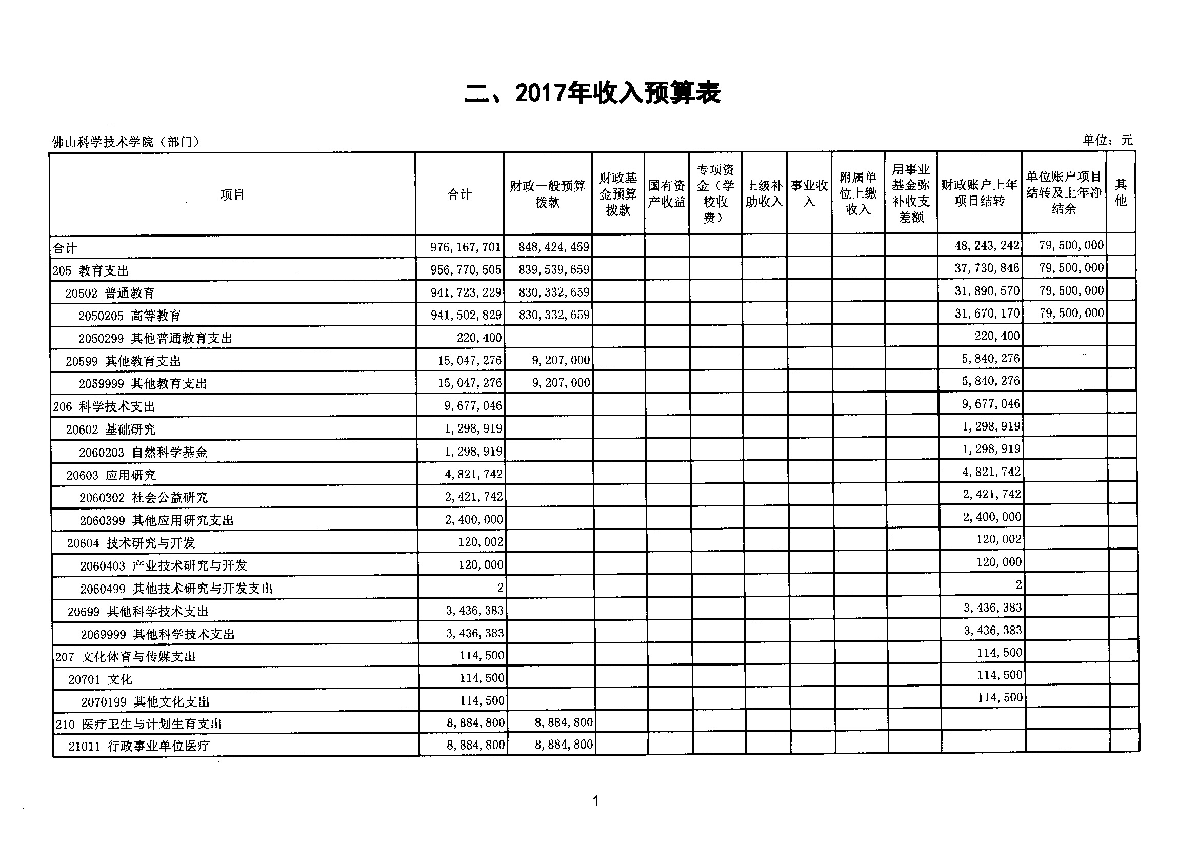 金沙娱乐城科学技术学院2017年预算总收入97,617万元;预算总支出97,617万元。