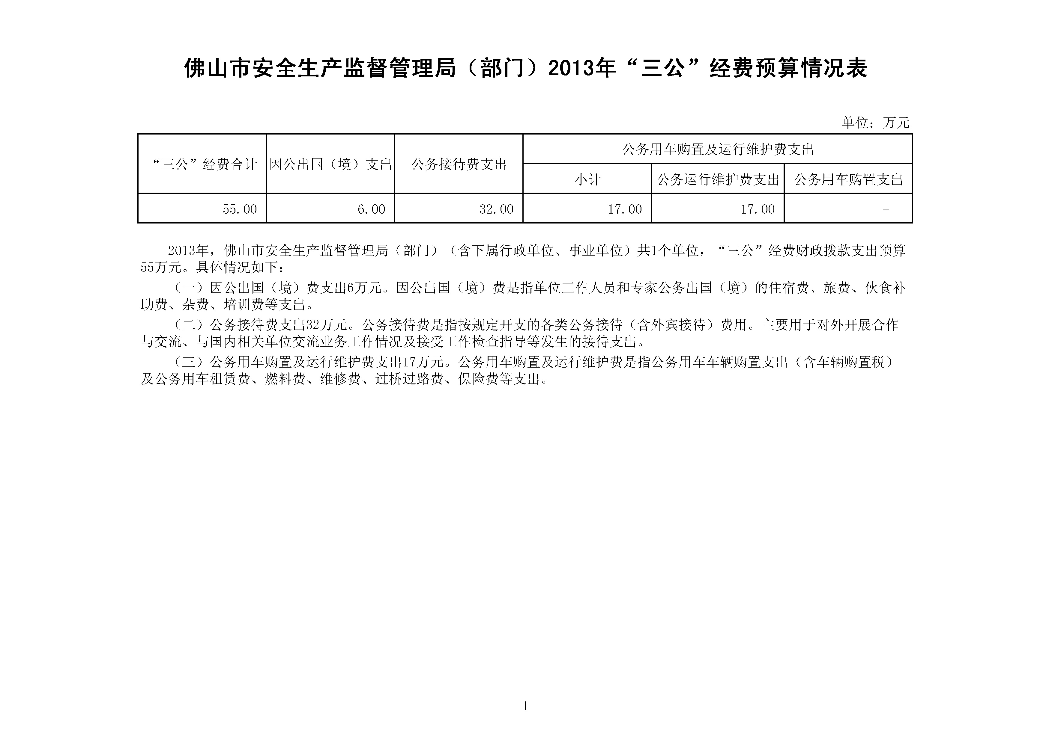 金沙娱乐城安全生产监督管理局(部门)2013年“三公”经费预算情况表