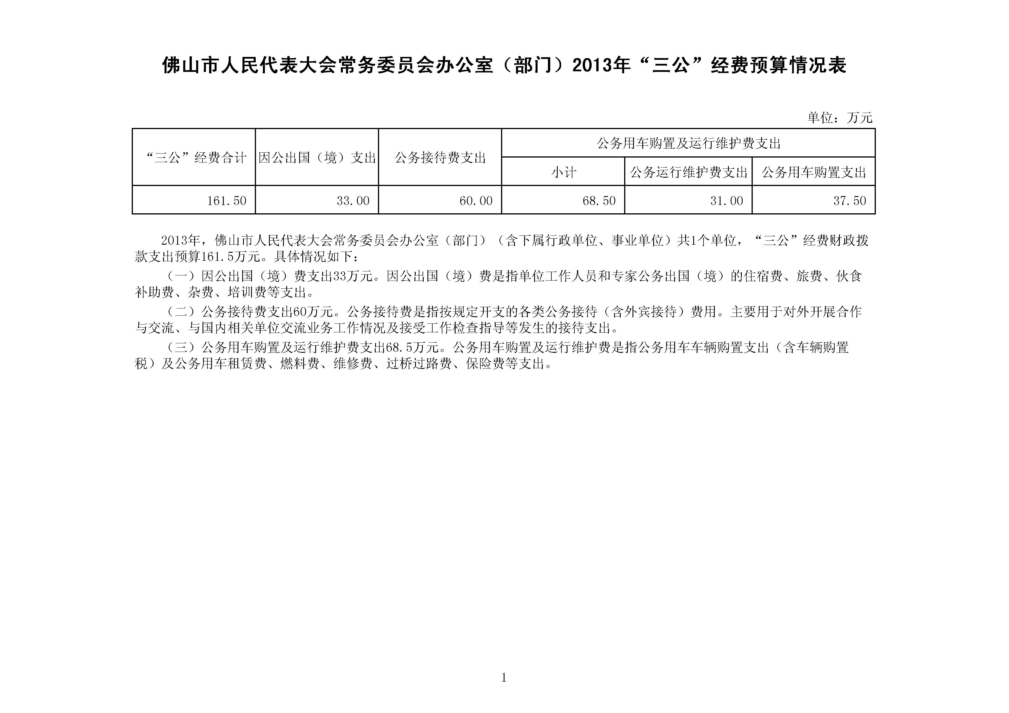 金沙娱乐城人民代表大会常务委员会办公室(部门)2013年“三公”经费预算情况表