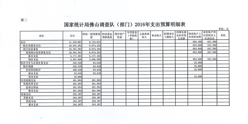 国家统计局金沙娱乐城调查队2016年部门预算