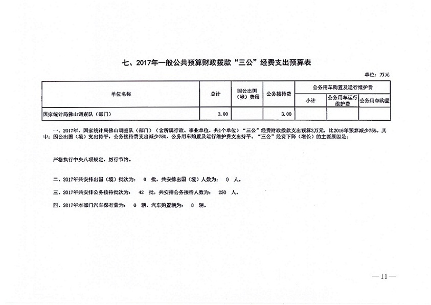 国家统计局金沙娱乐城调查队(部门)2017年“三公”经费财政拨款预算表