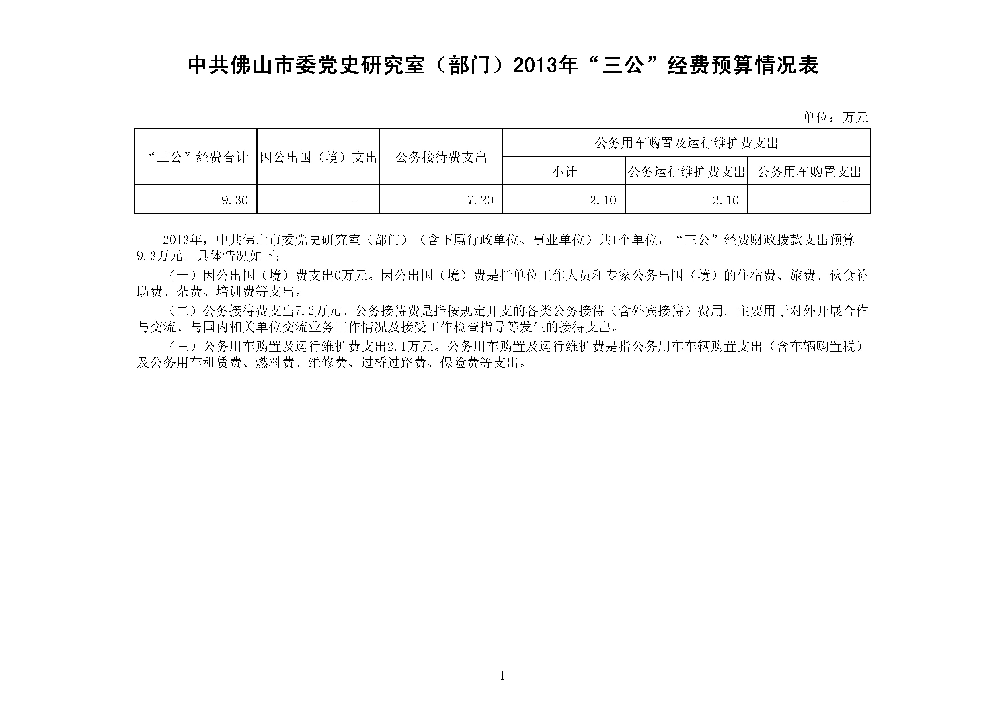 中共金沙娱乐城委党史研究室(部门)2013年“三公”经费预算情况表