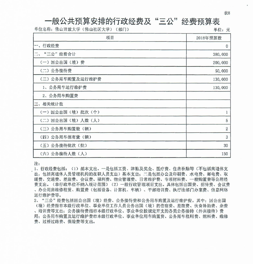金沙娱乐城开放大学(金沙娱乐城社区大学)(部门)2018年“三公”经费预算批复表