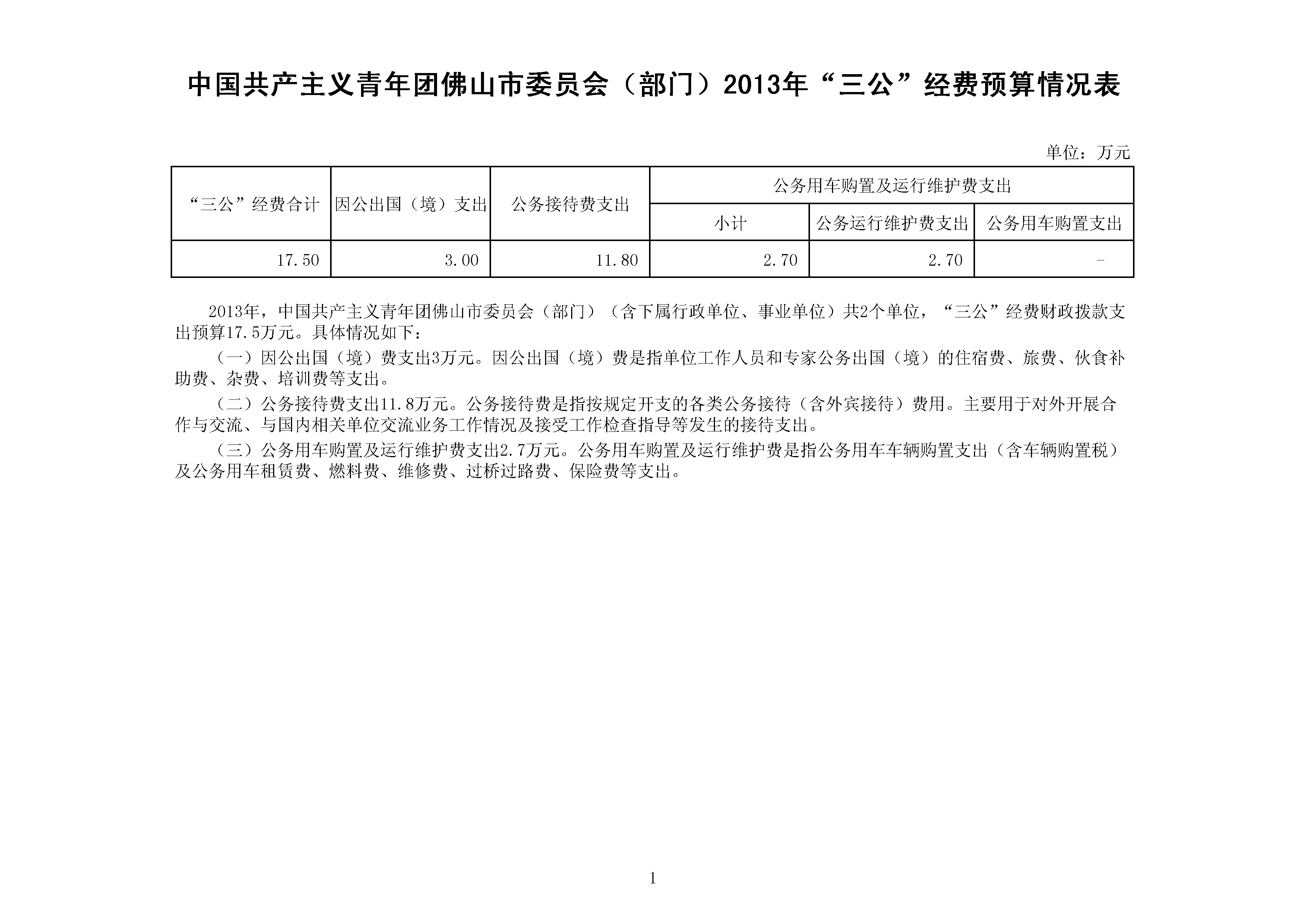 中国共产主义青年团金沙娱乐城委员会(部门)2013年“三公”经费预算情况表