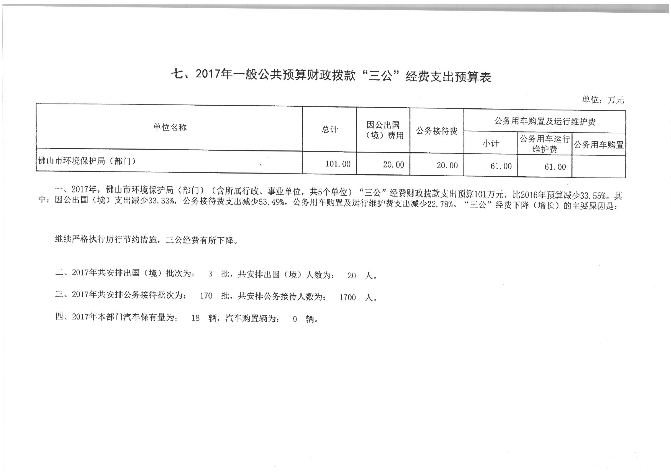 金沙娱乐城环境保护局(部门)2017年“三公”经费支出预算表