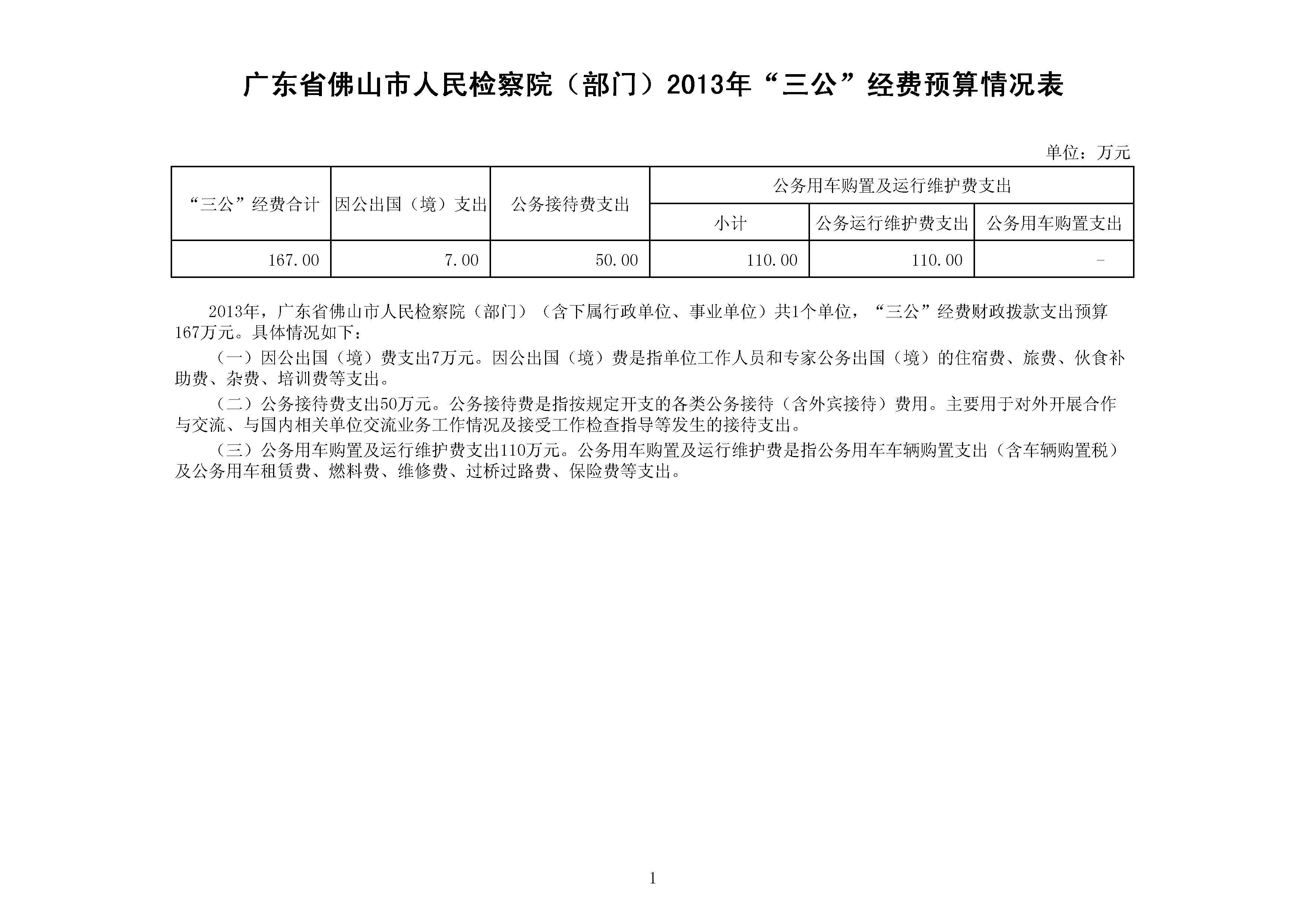 广东省金沙娱乐城人民检察院(部门)2013年“三公”经费预算情况表