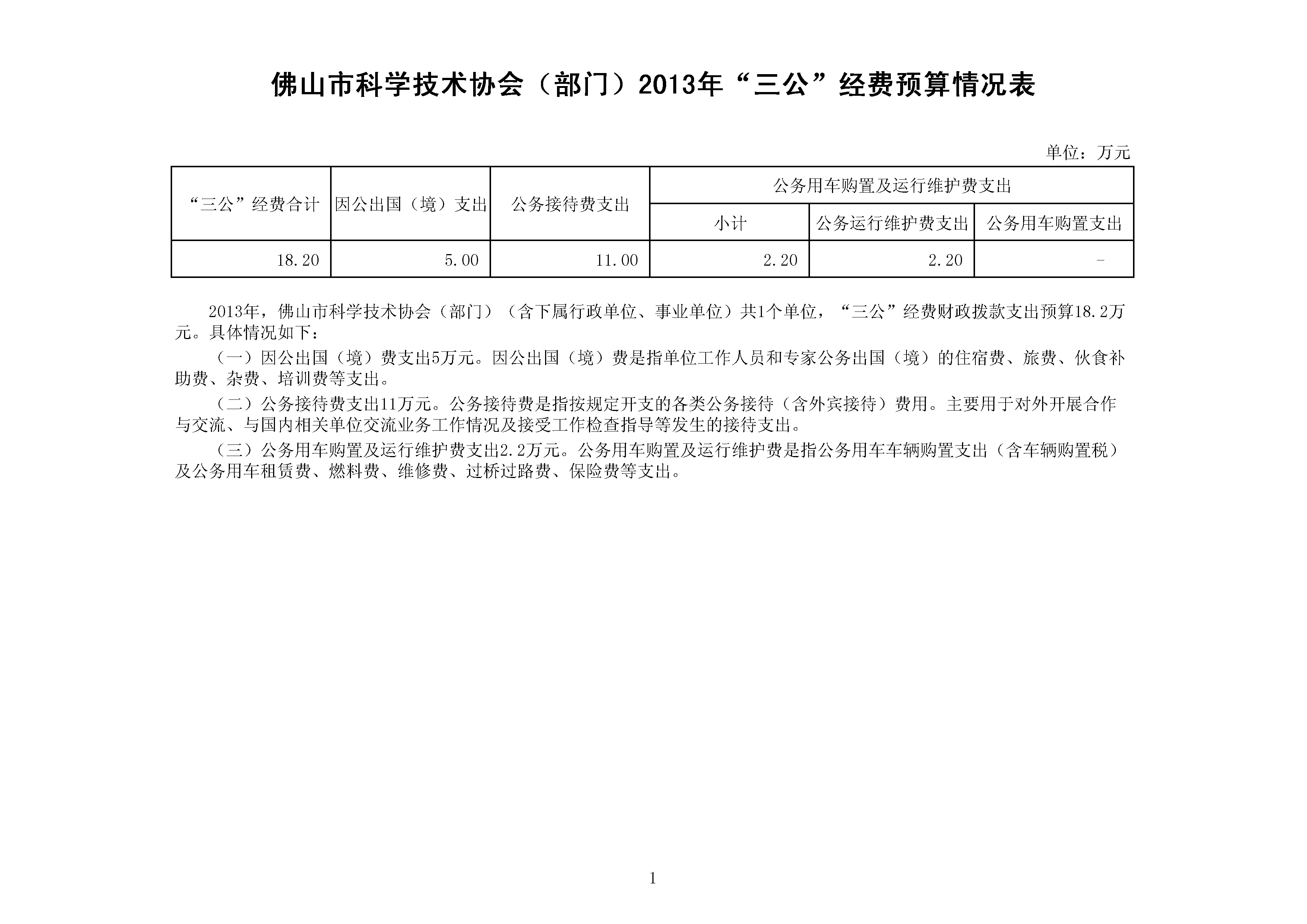 金沙娱乐城科学技术协会(部门)2013年“三公”经费预算情况表