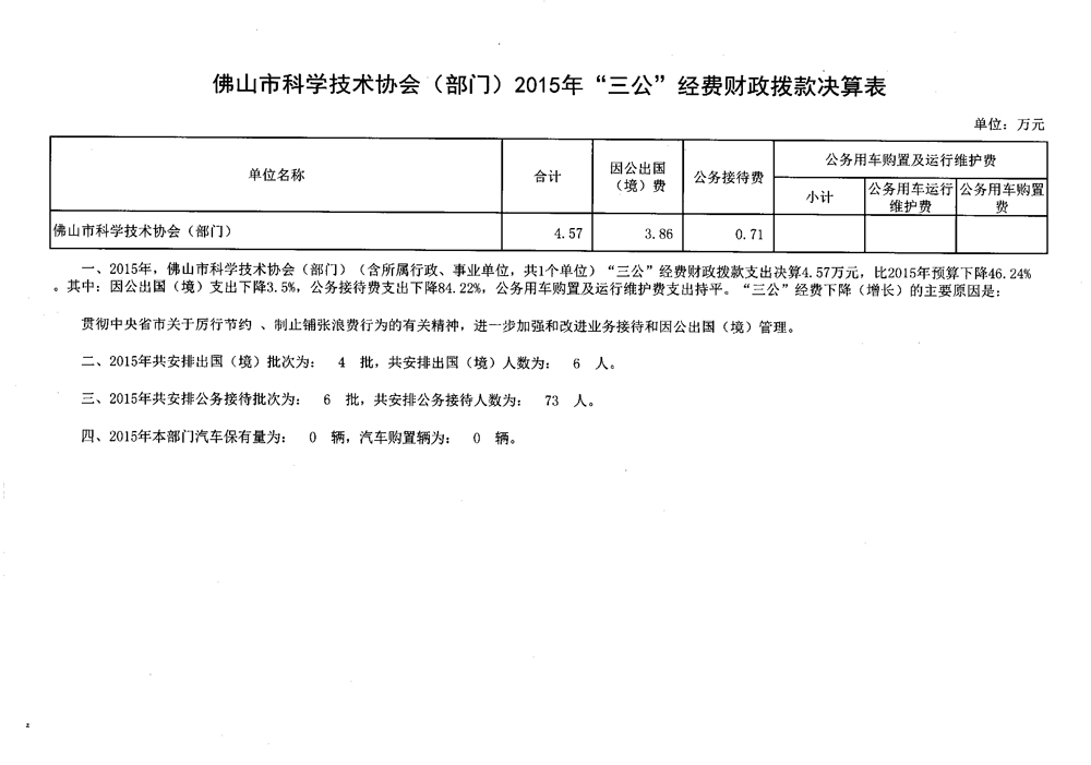 金沙娱乐城科学技术协会(部门)2015年“三公”经费财政拨款决算表