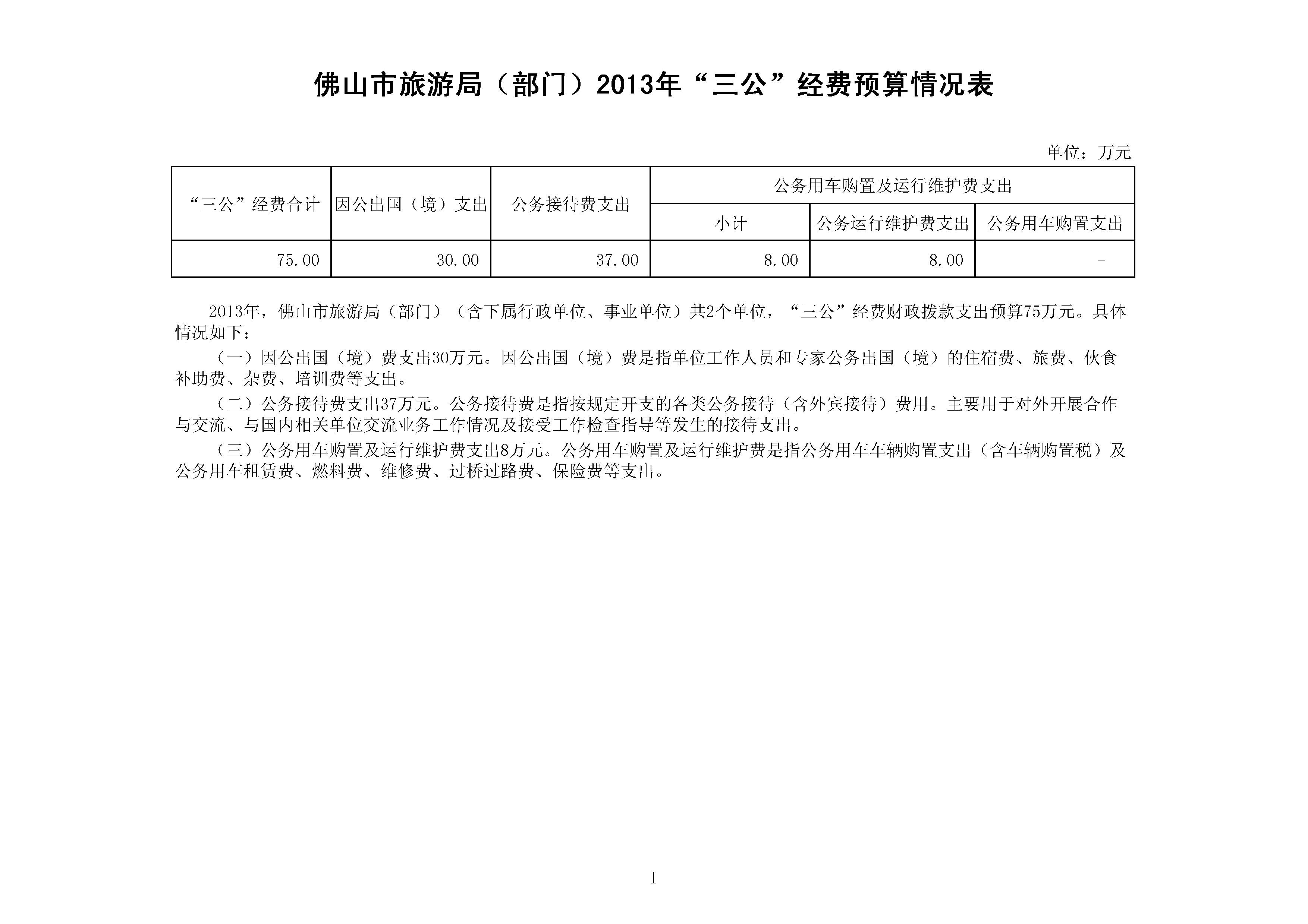 金沙娱乐城旅游局(部门)2013年“三公”经费预算情况表