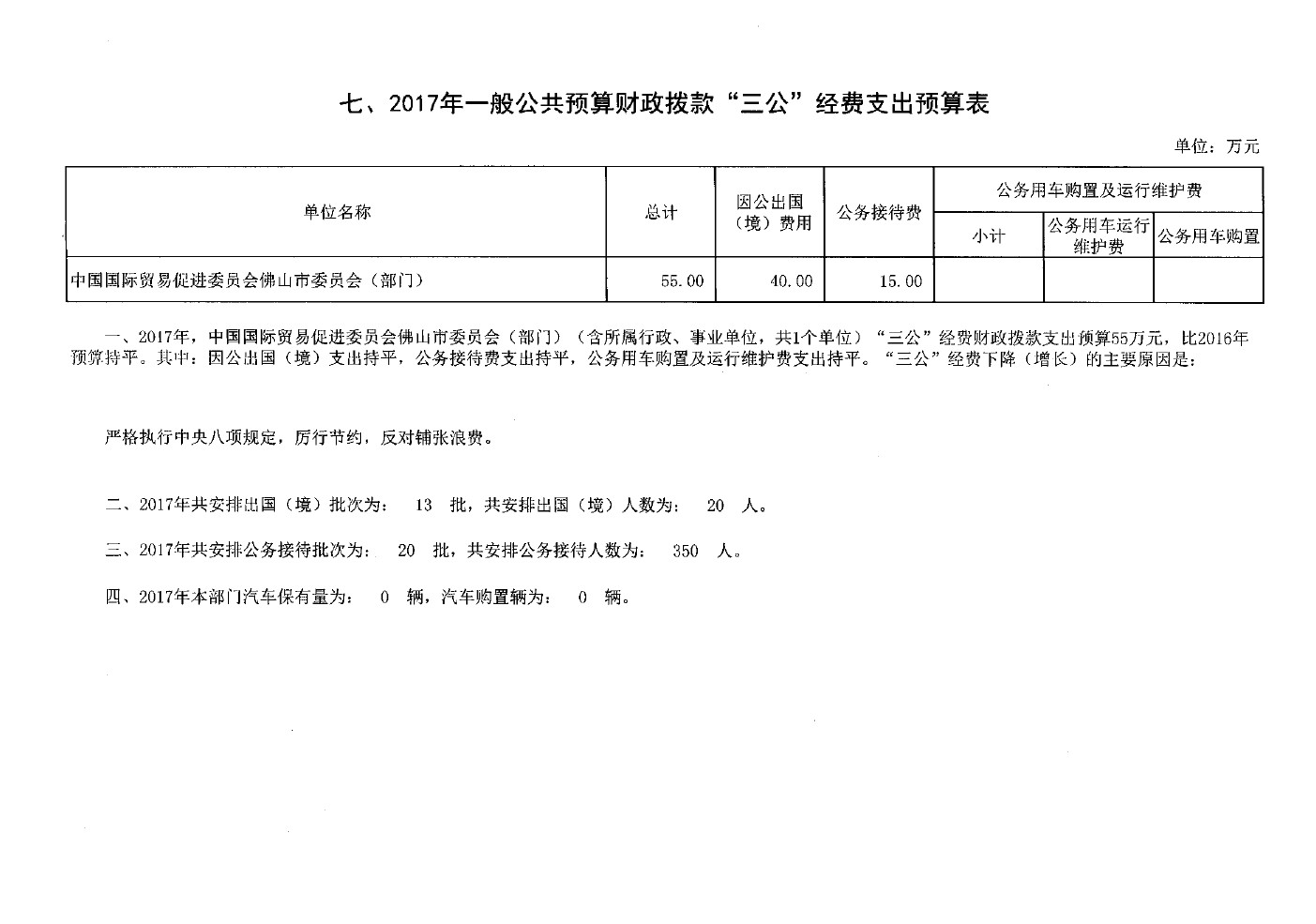 中国国际贸易促进委员会金沙娱乐城委员会(部门)2017年“三公”经费财政拨款预算表