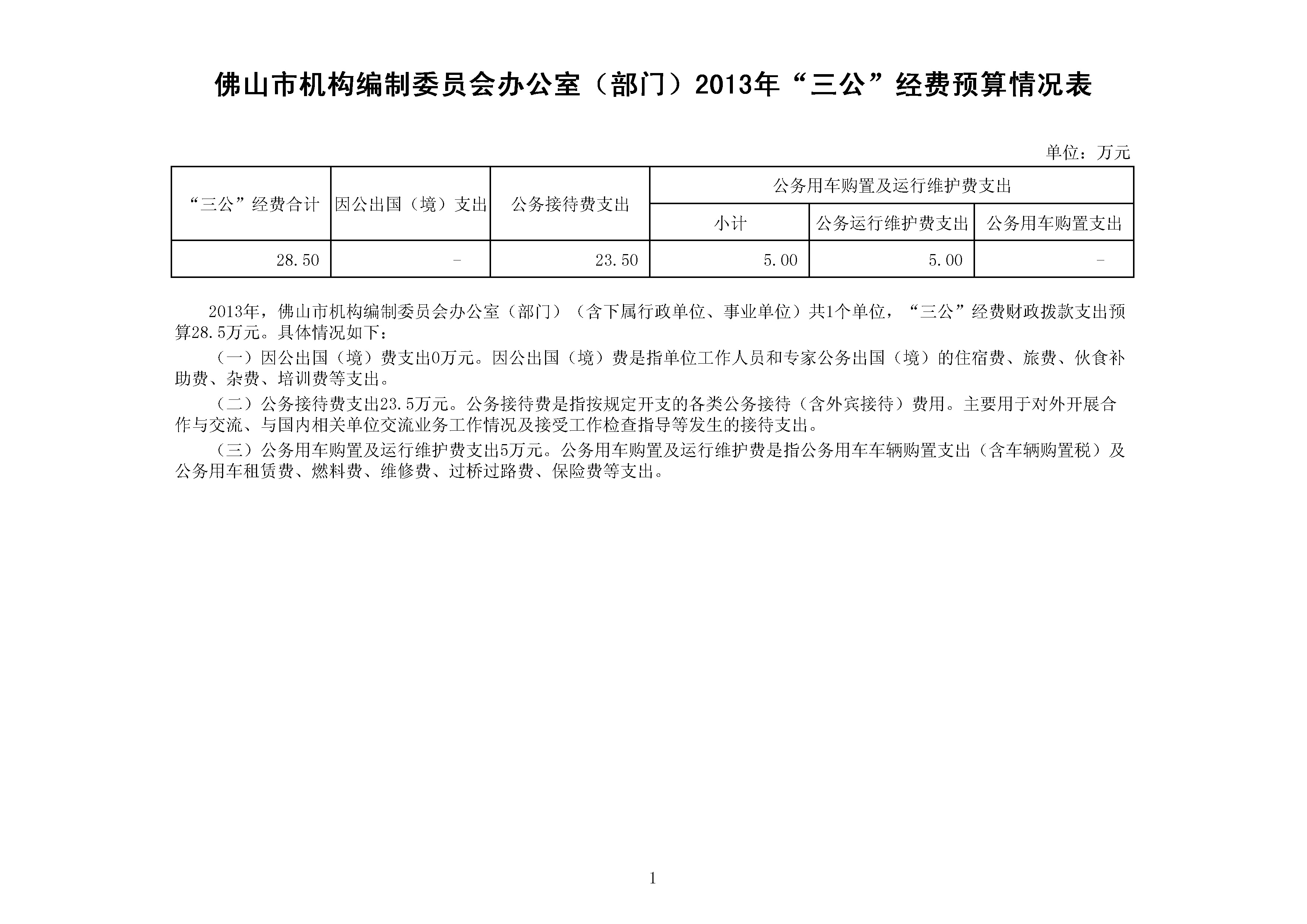 金沙娱乐城机构编制委员会办公室(部门)2013年“三公”经费预算情况表