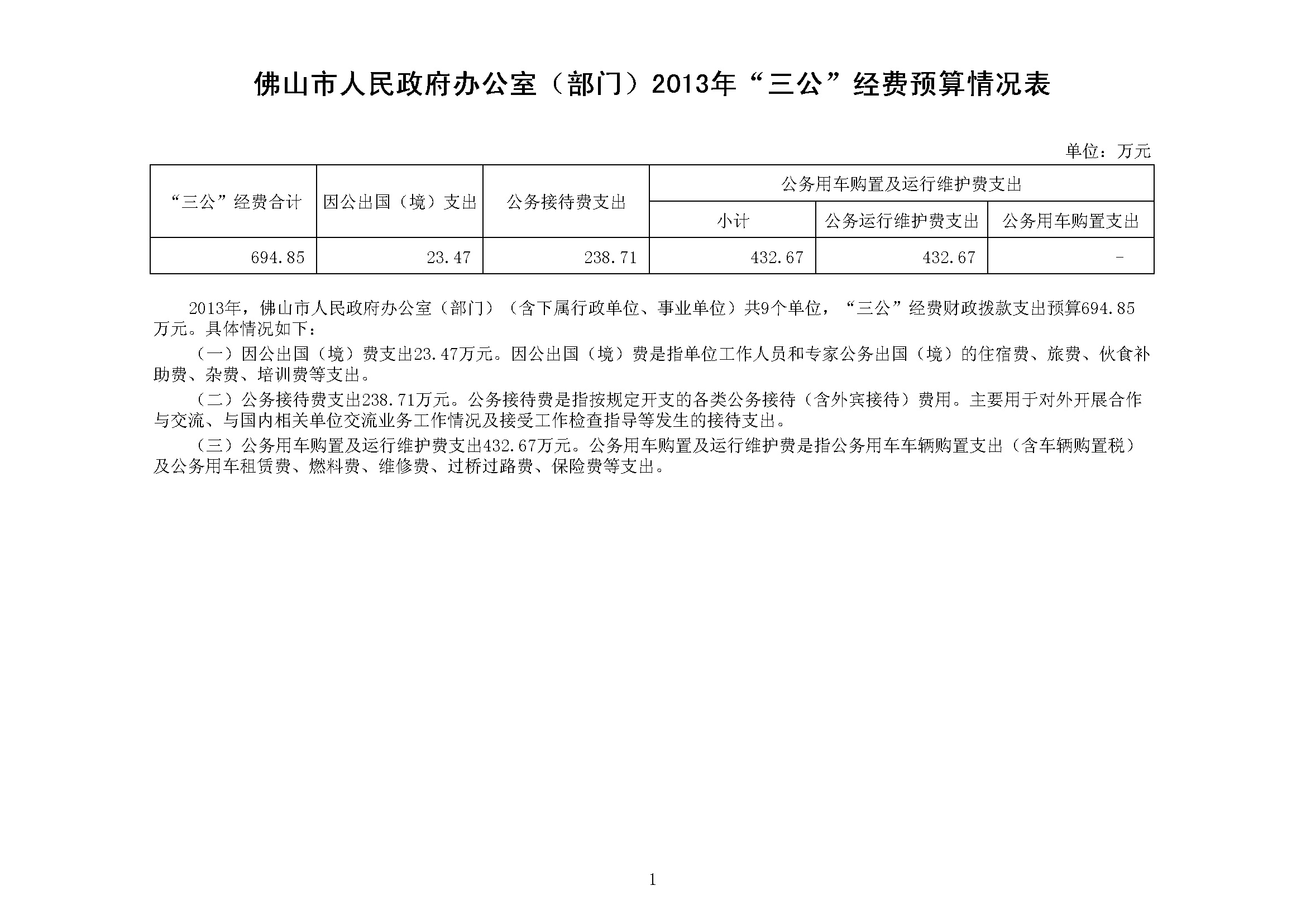 金沙娱乐城办公室(部门)2013年“三公”经费预算情况表