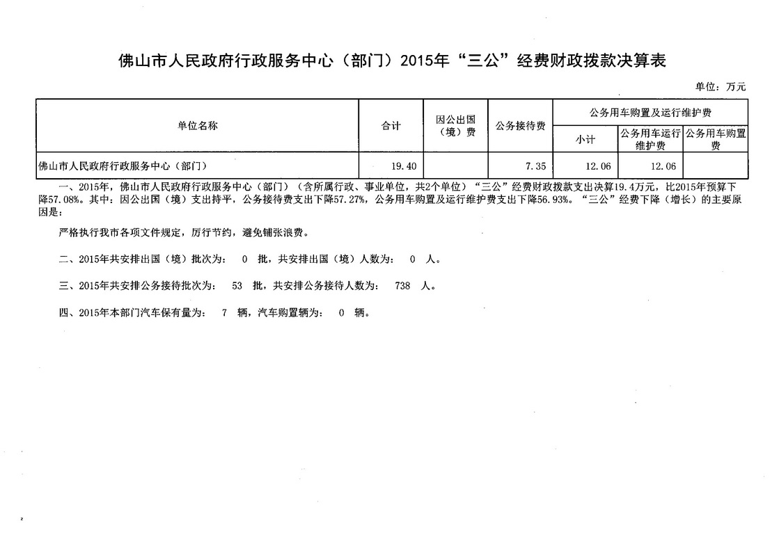金沙娱乐城行政服务中心(部门)2015年“三公”经费财政拨款决算表