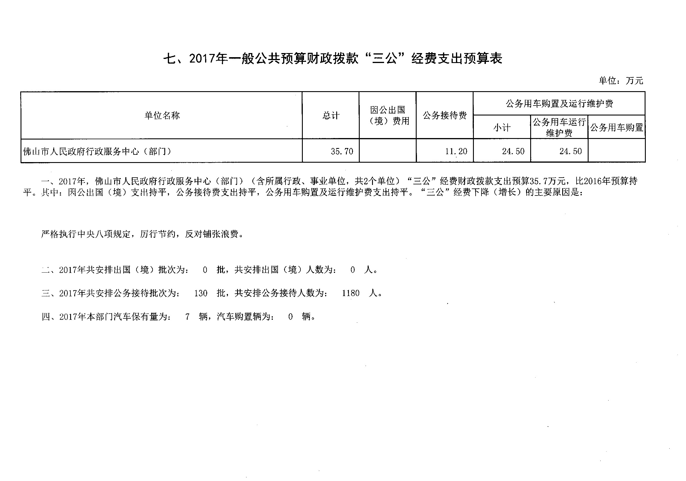 金沙娱乐城行政服务中心2017年一般公共预算财政拨款“三公”经费支出预算表
