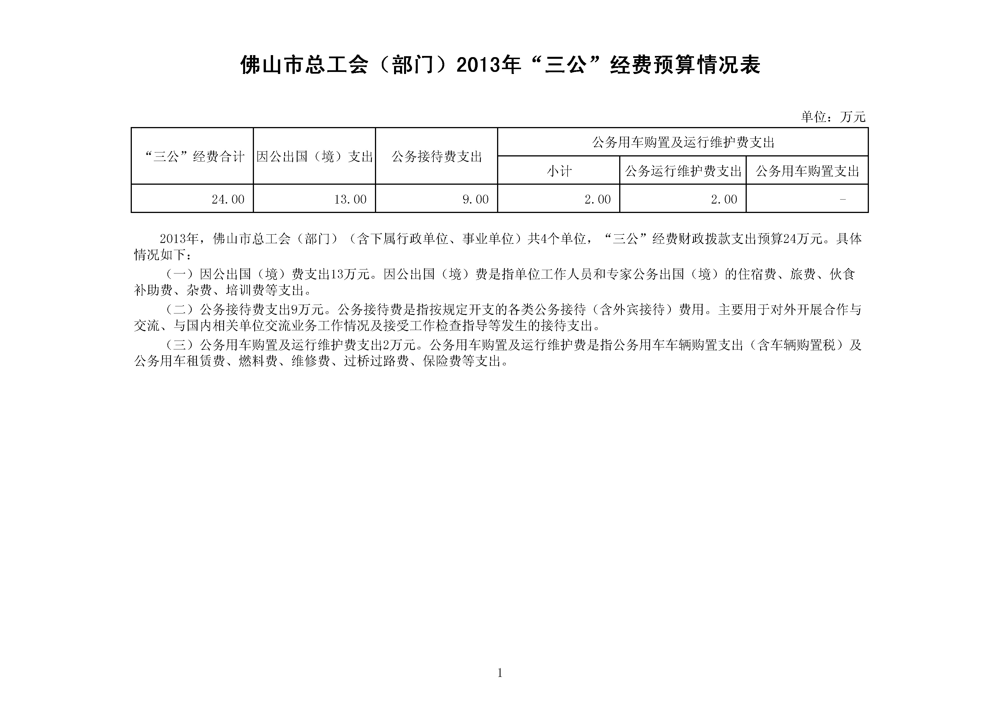 金沙娱乐城总工会(部门)2013年“三公”经费预算情况表