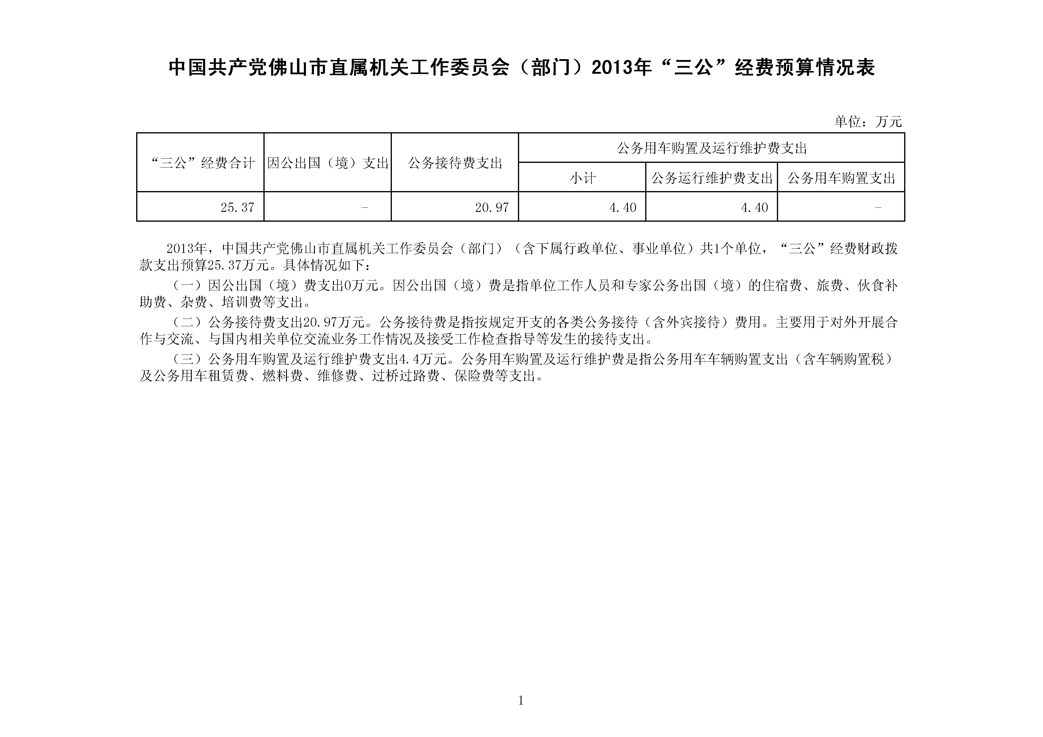 中国共产党金沙娱乐城直属机关工作委员会(部门)2013年“三公”经费预算情况表