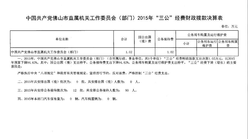 中国共产党金沙娱乐城直属机关工作委员会2015年“三公”经费财政拨款决算表